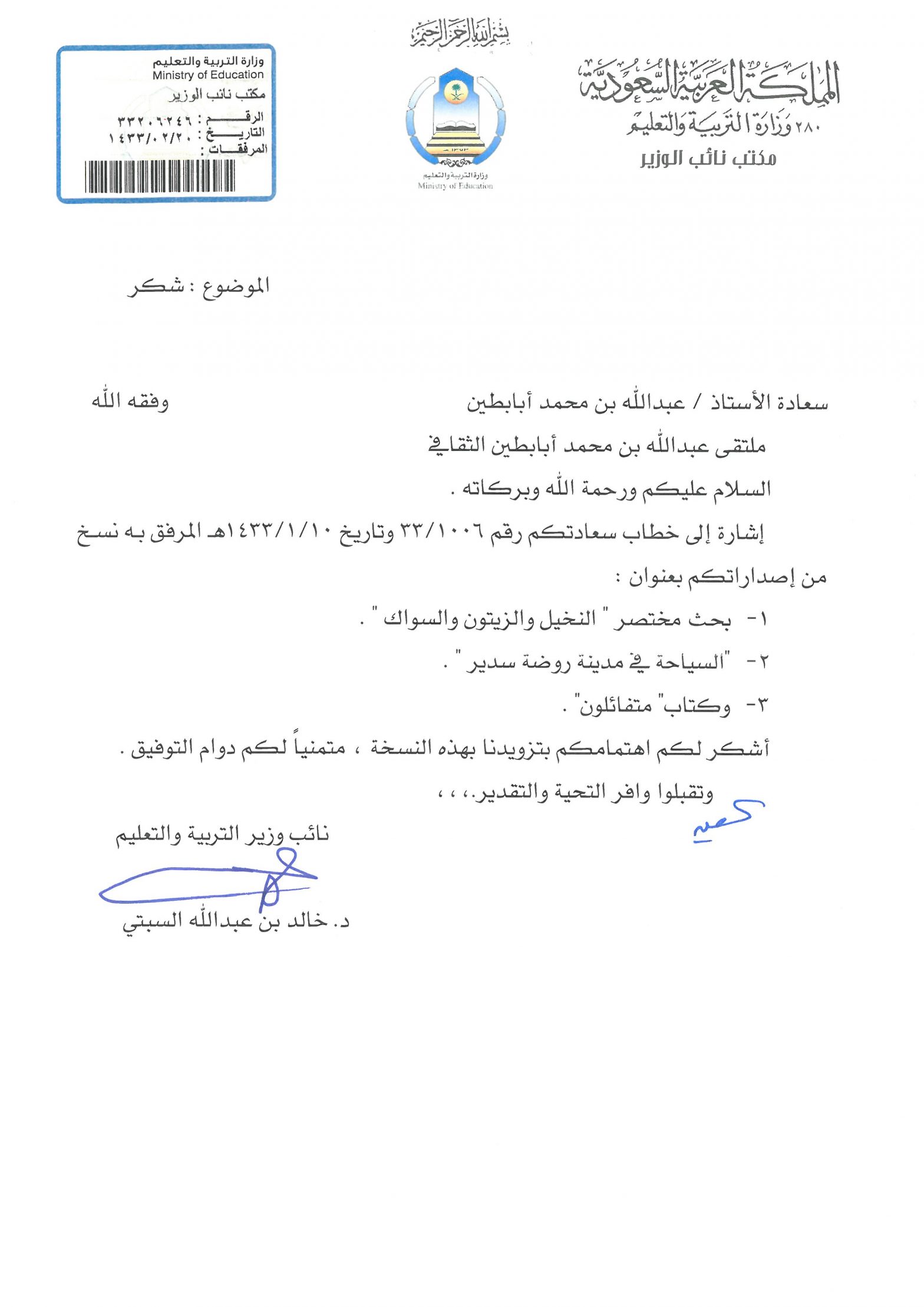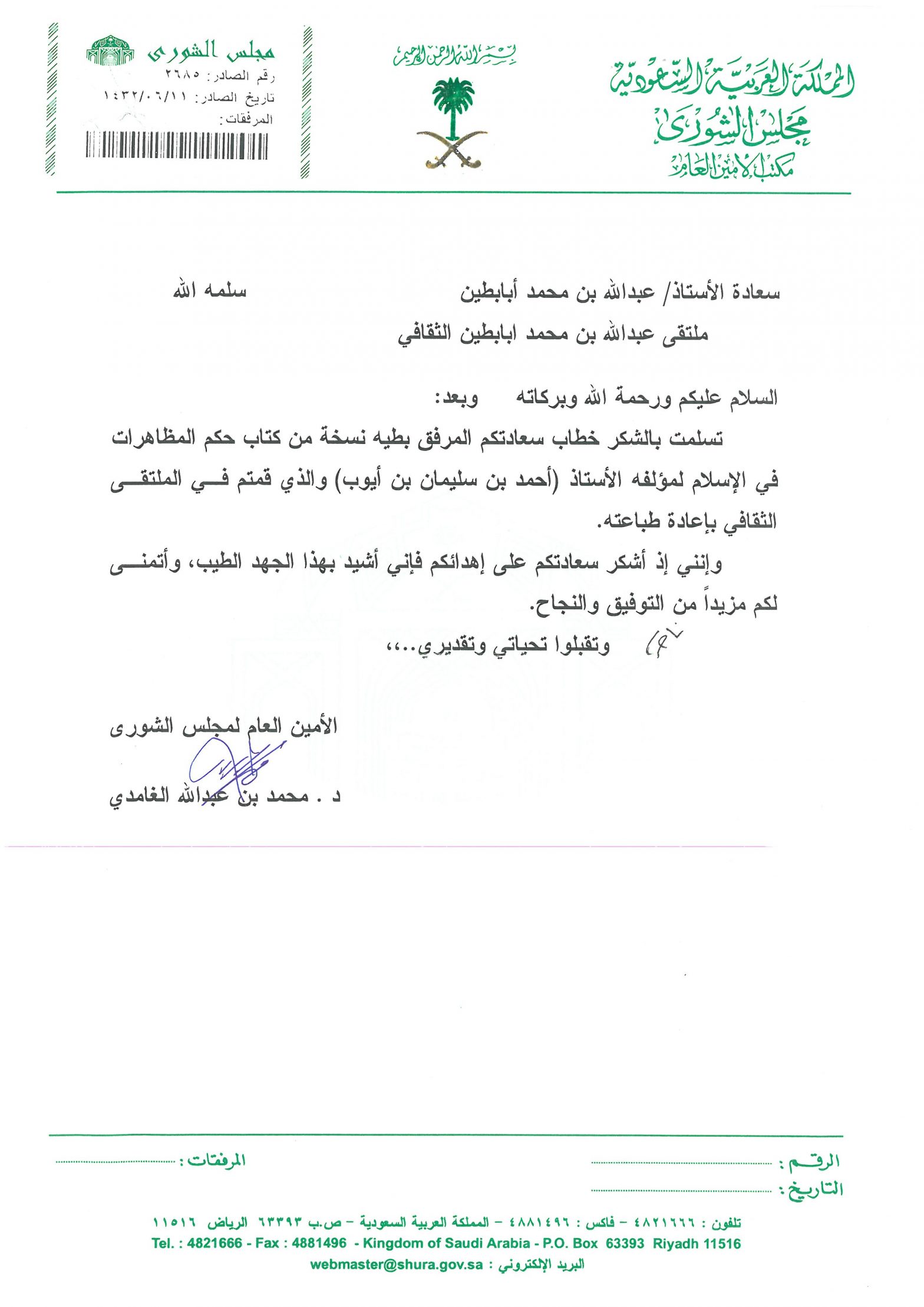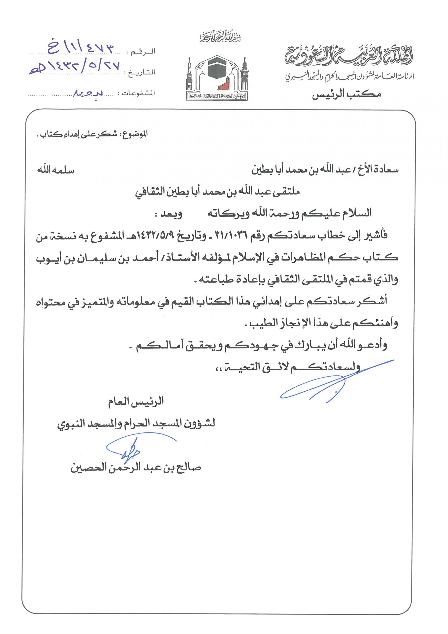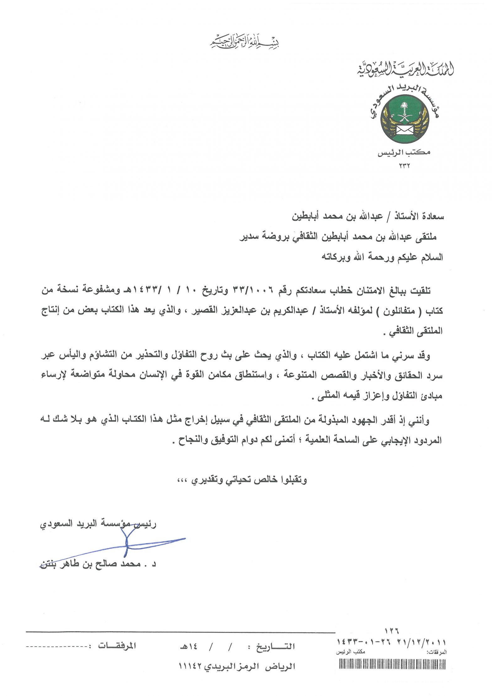 خطابات الشكر