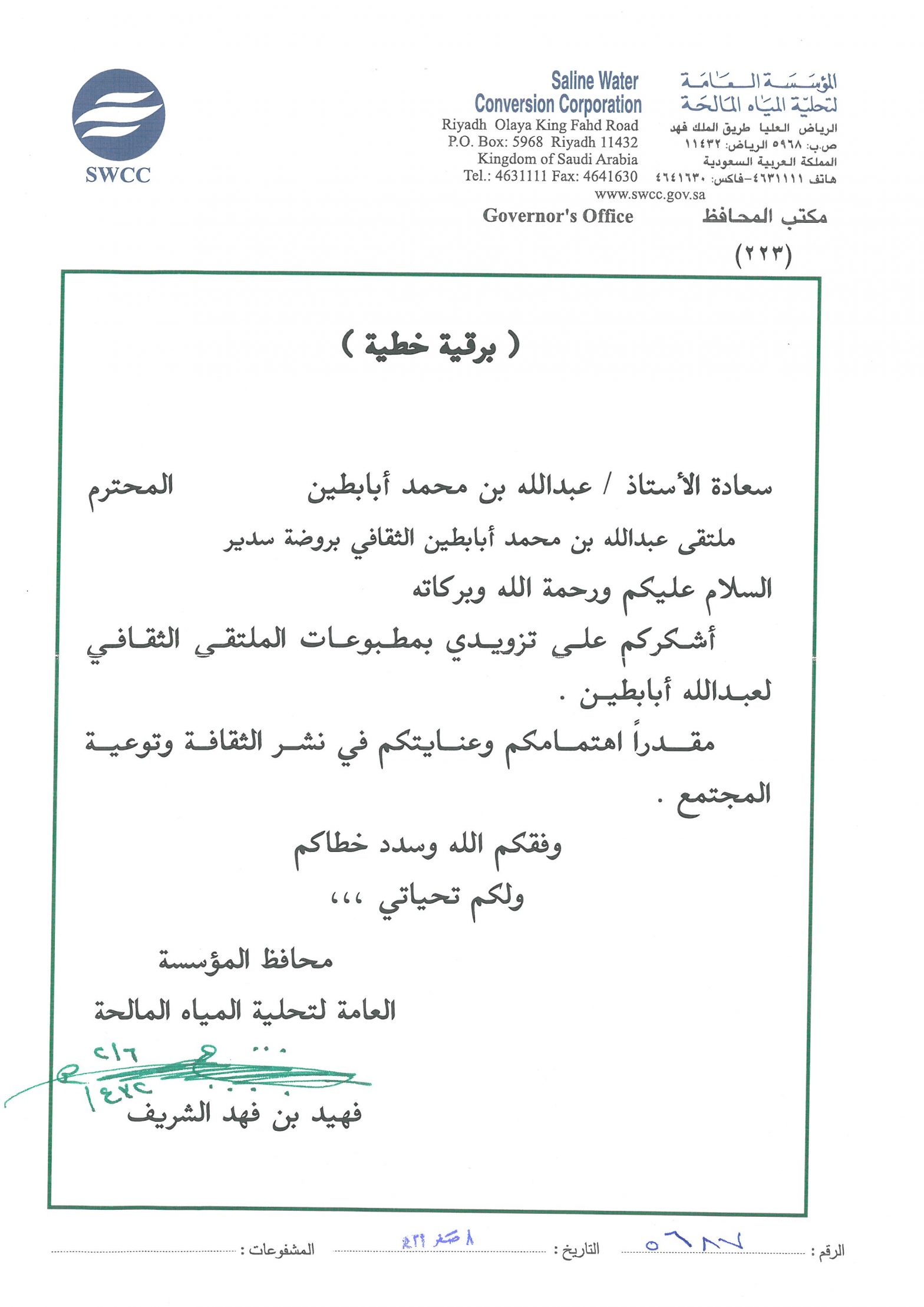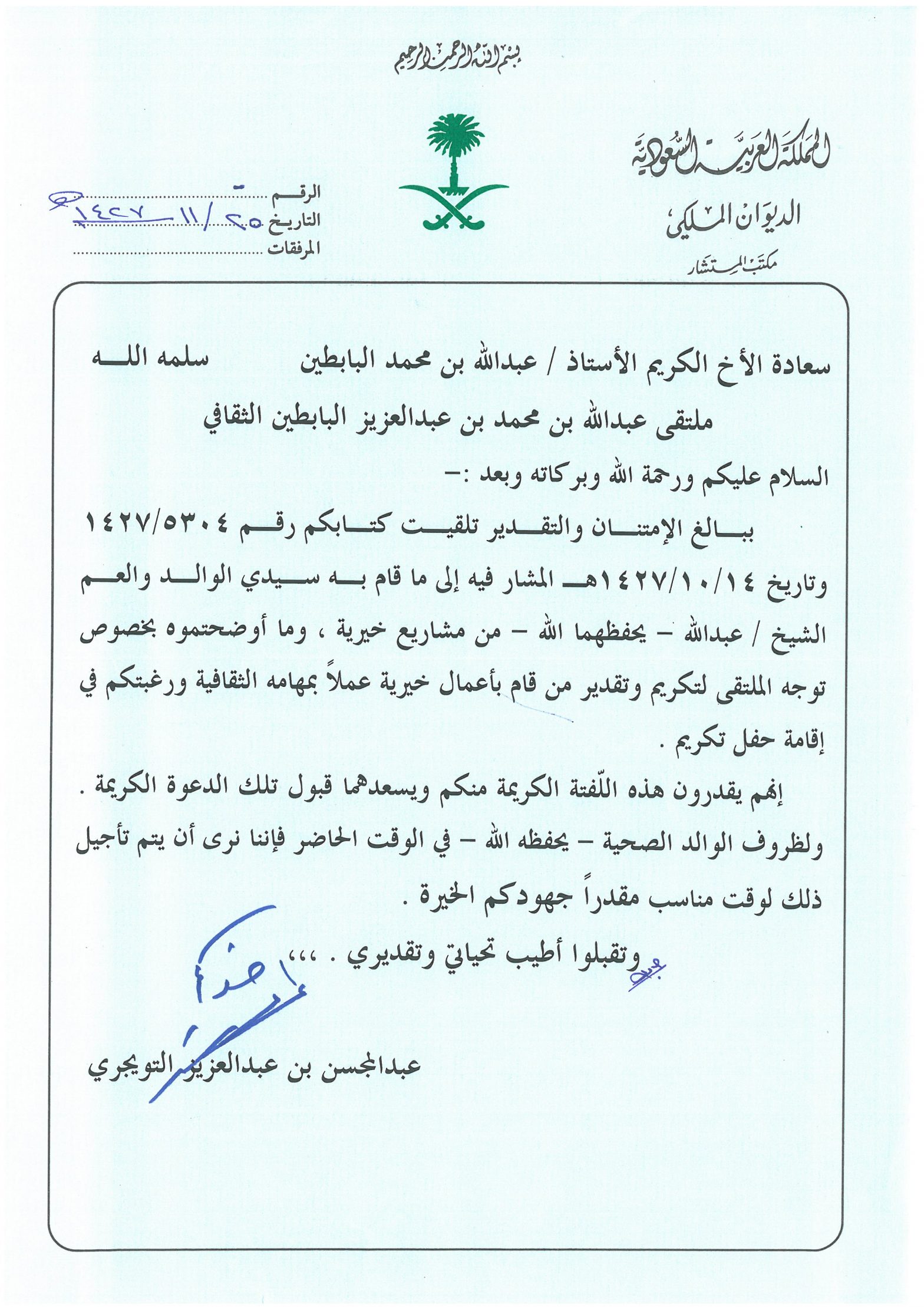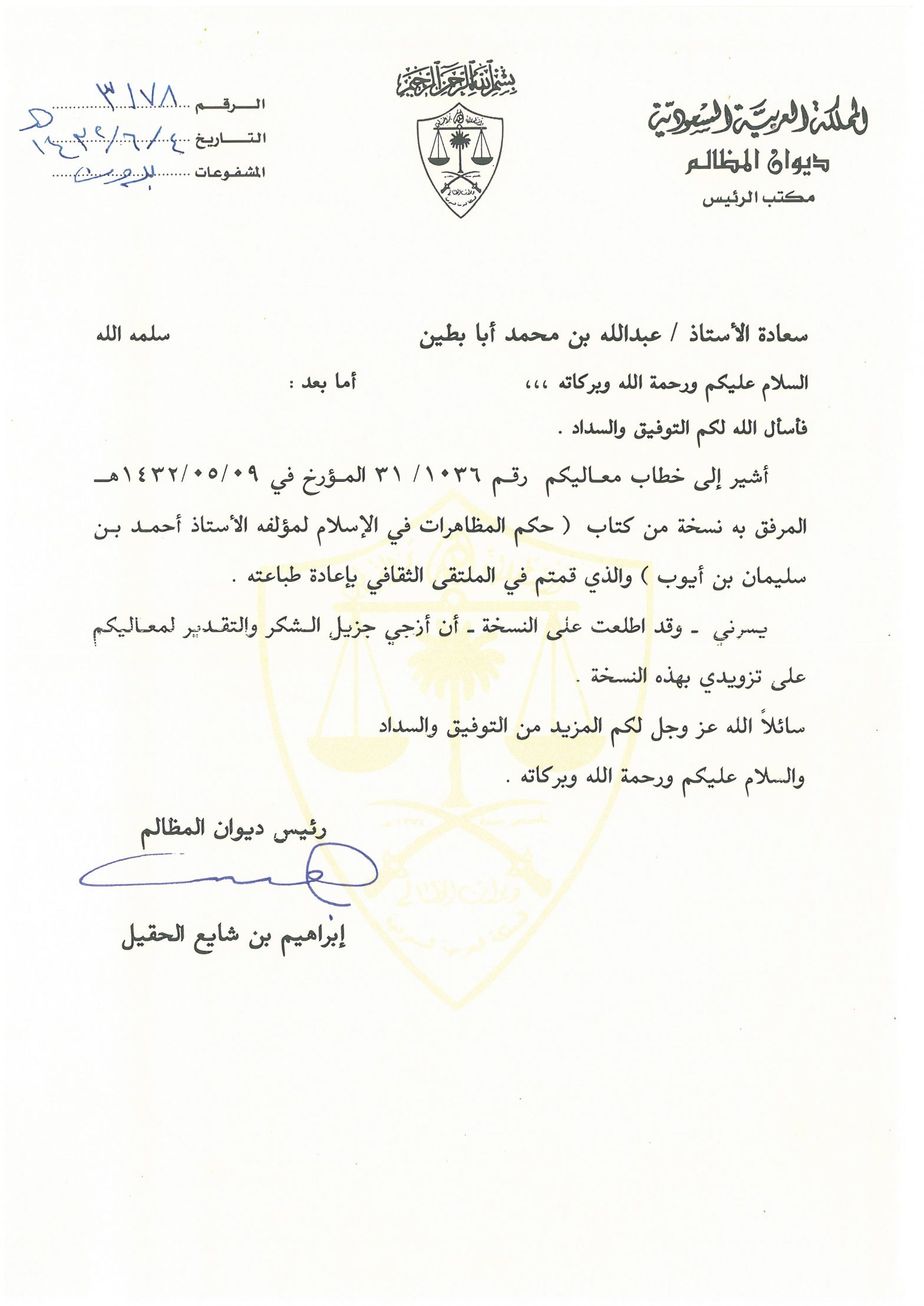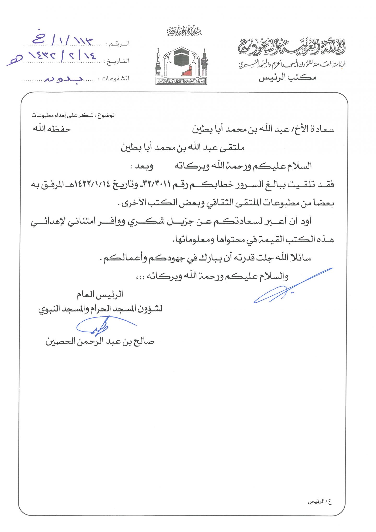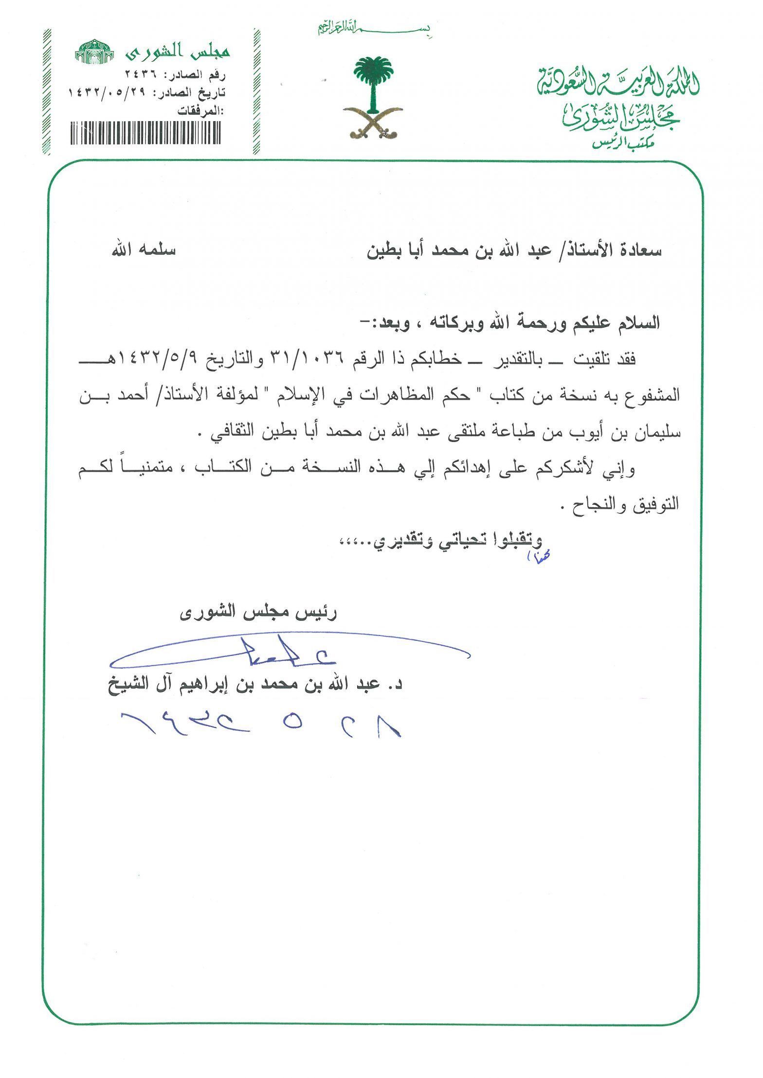 خطابات الشكر