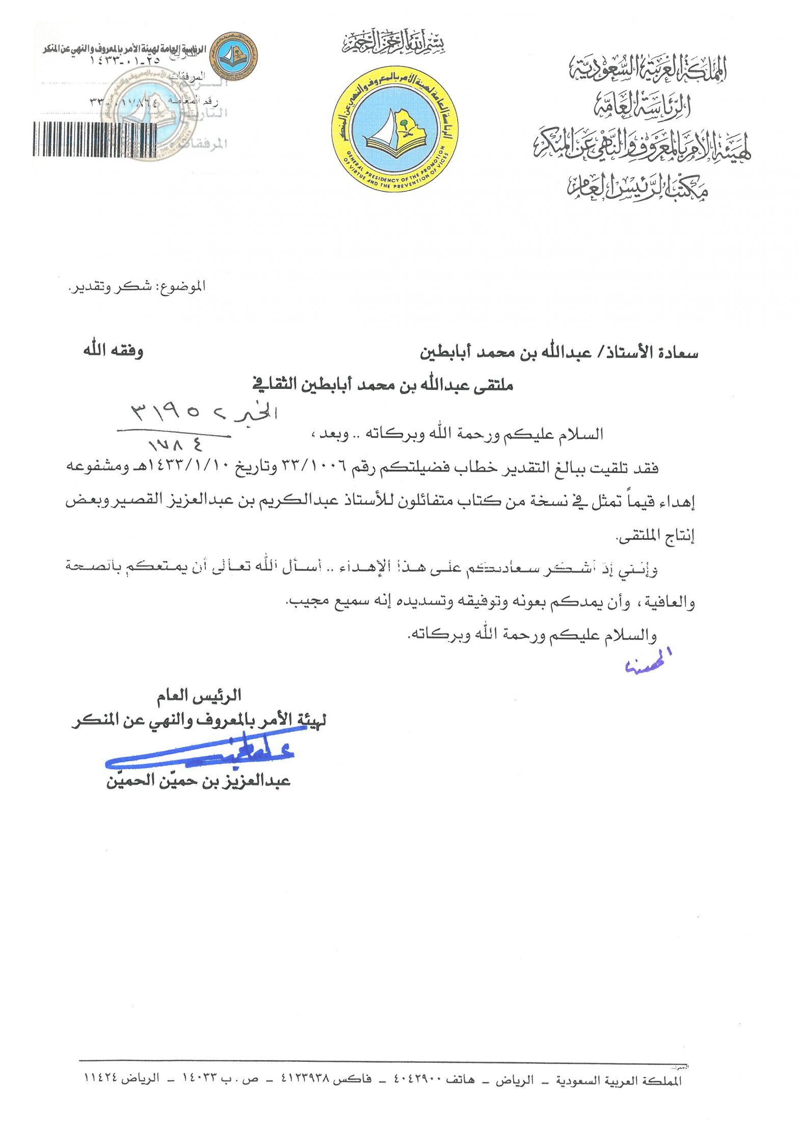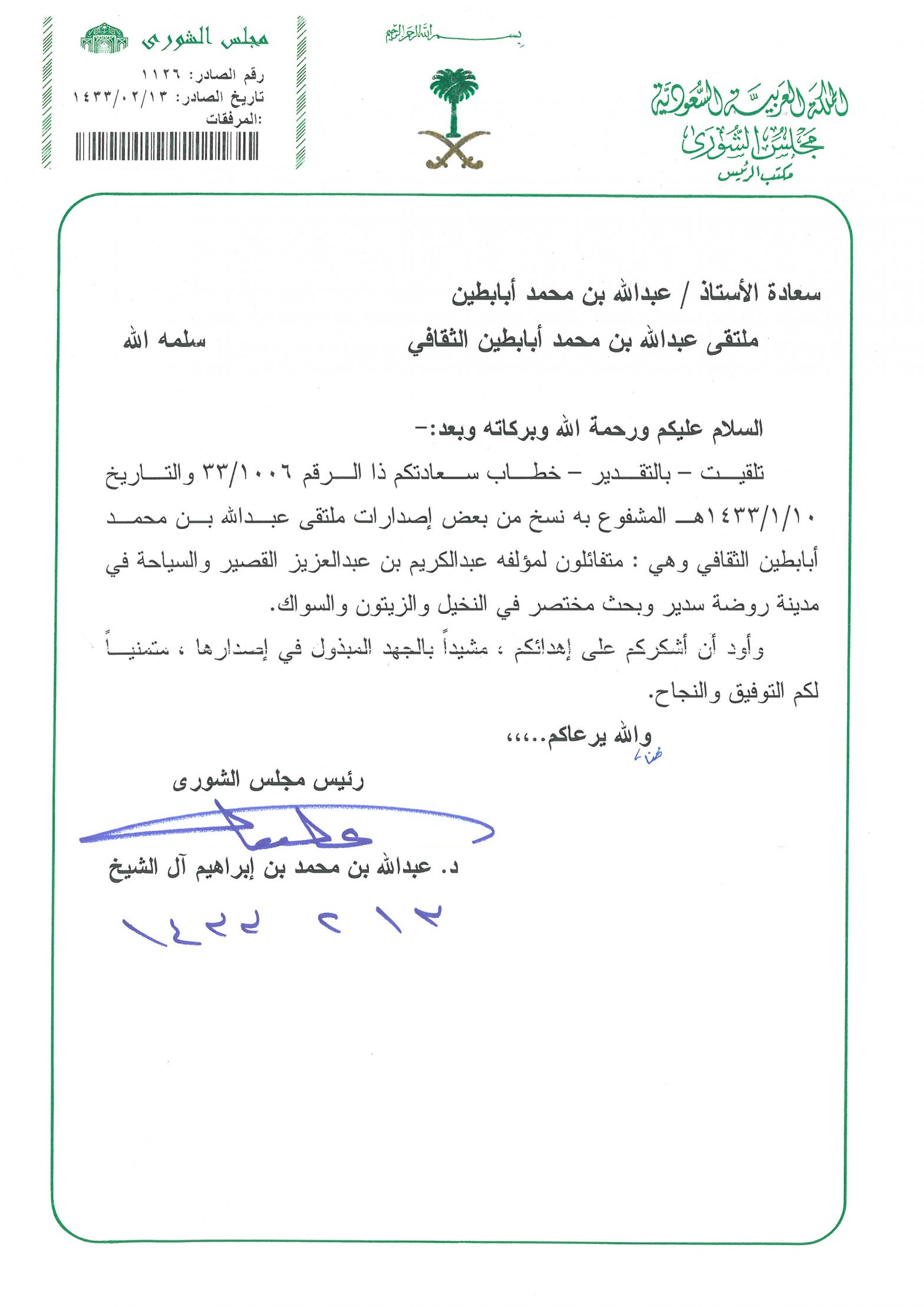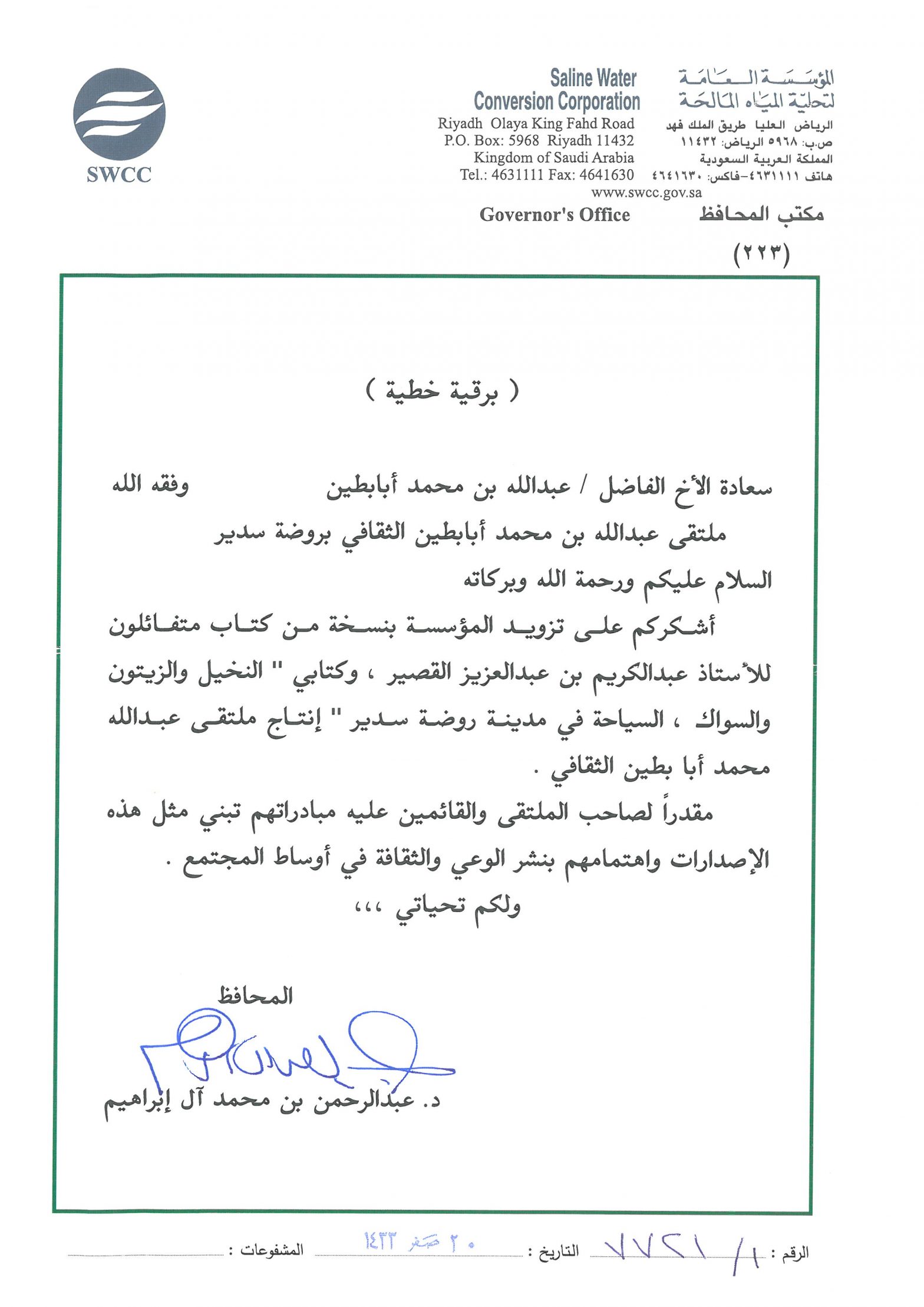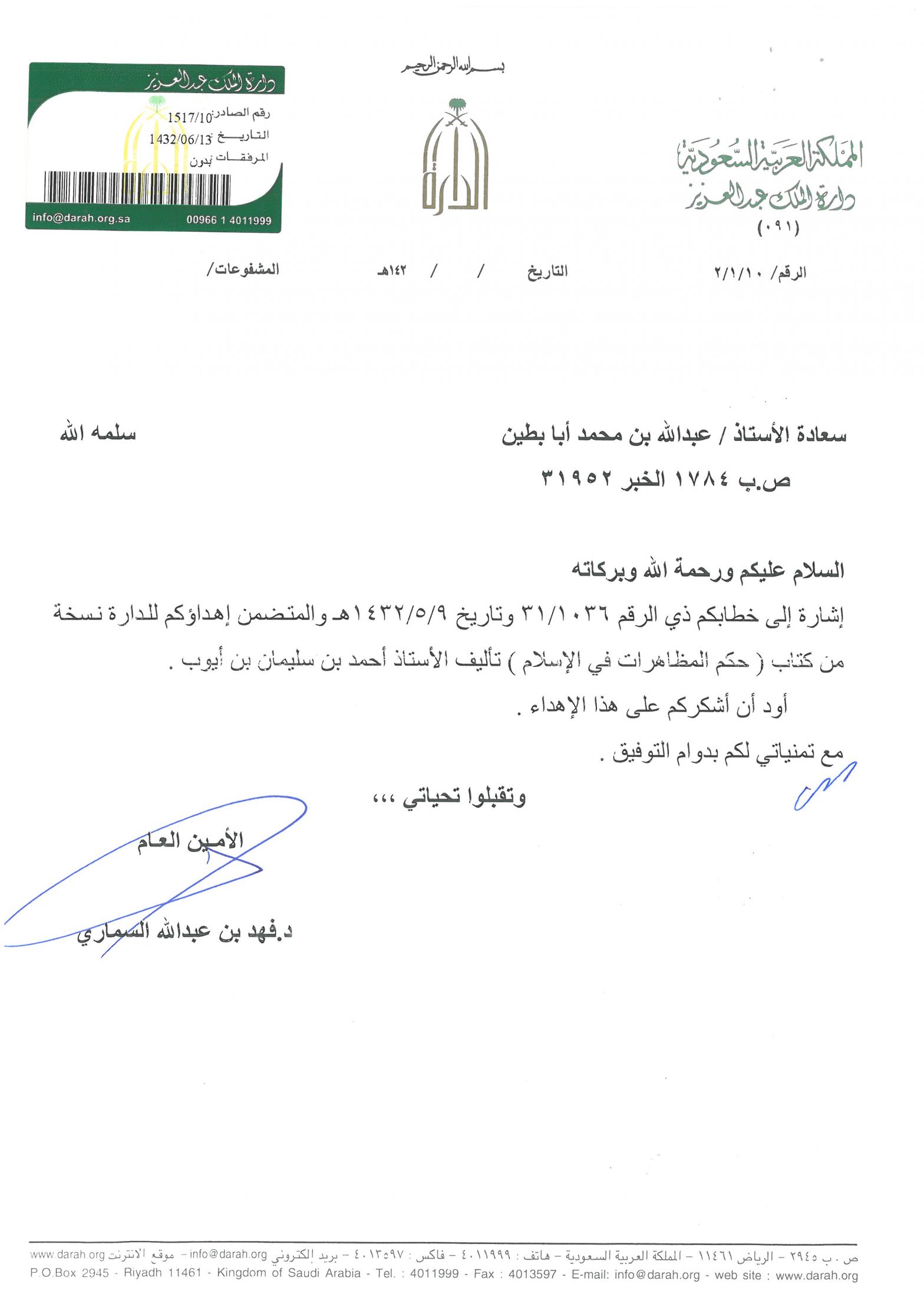 خطابات الشكر
