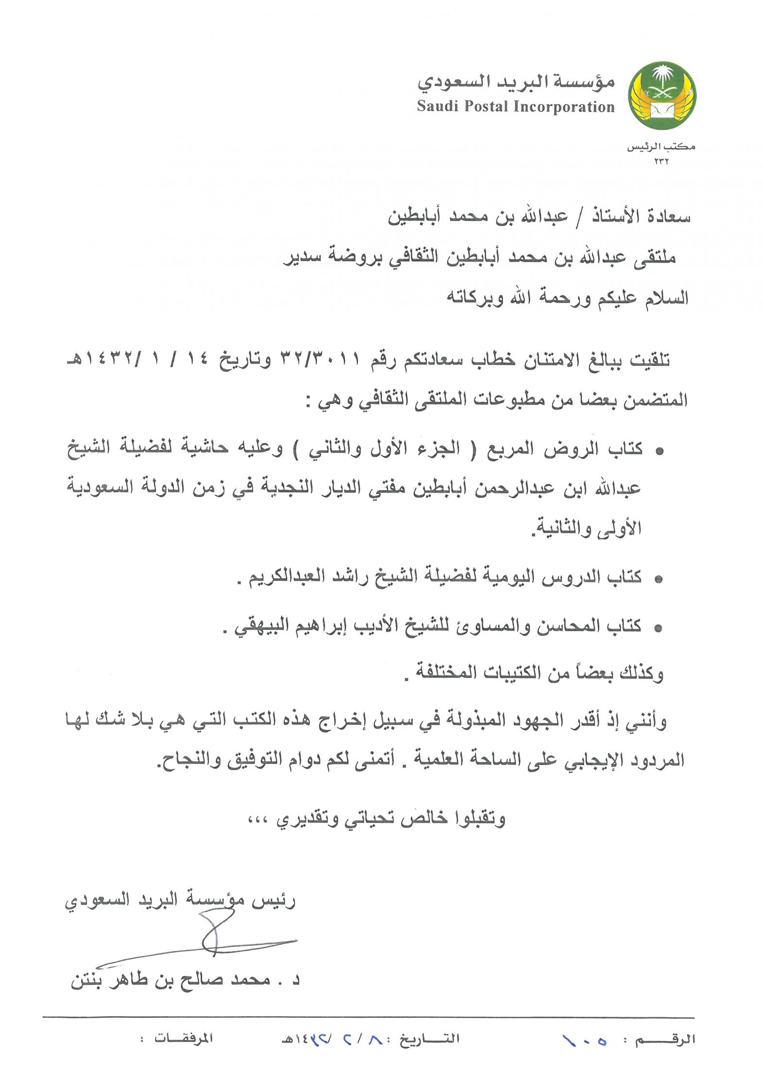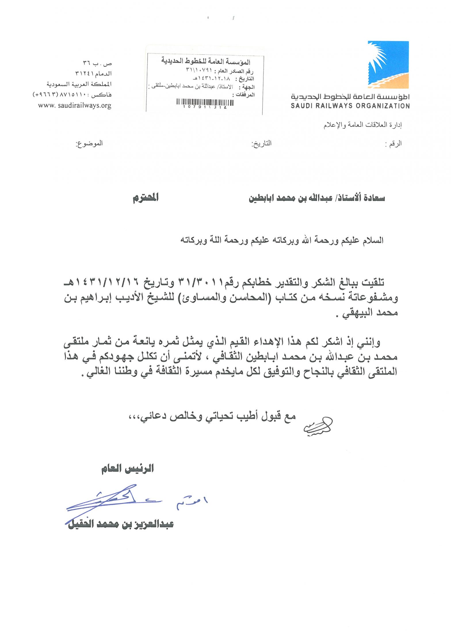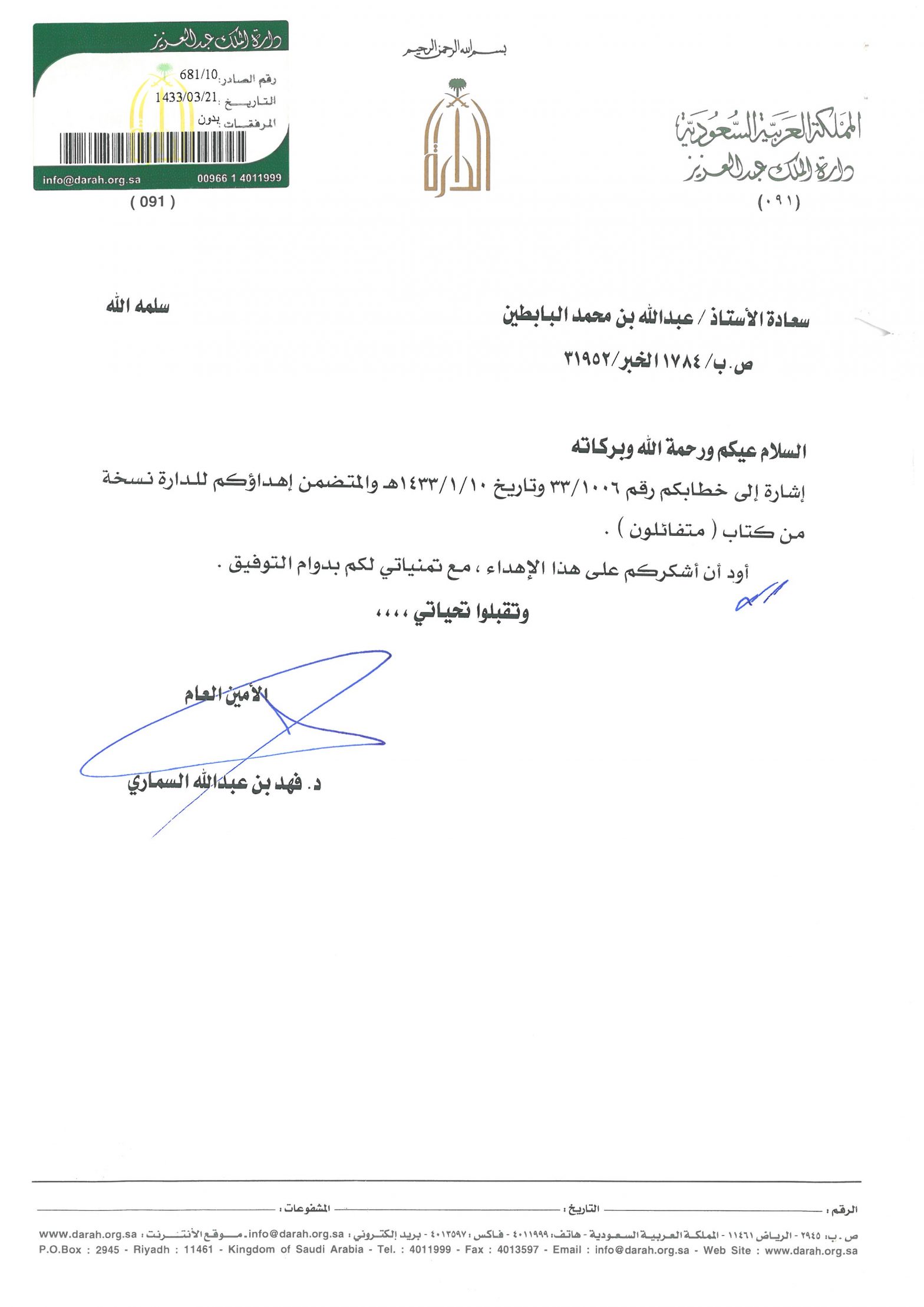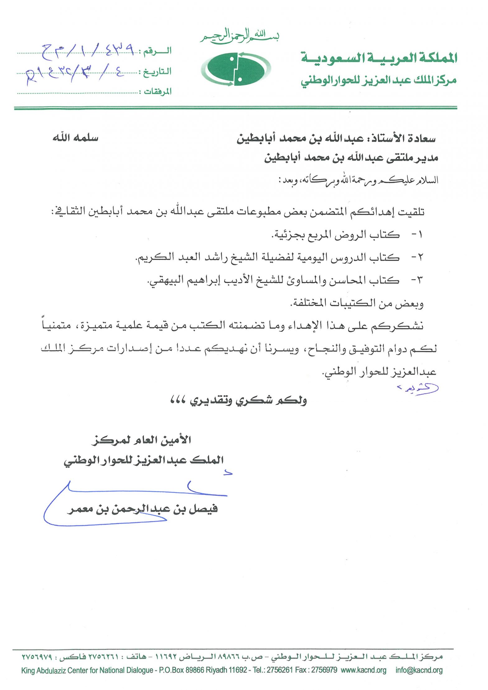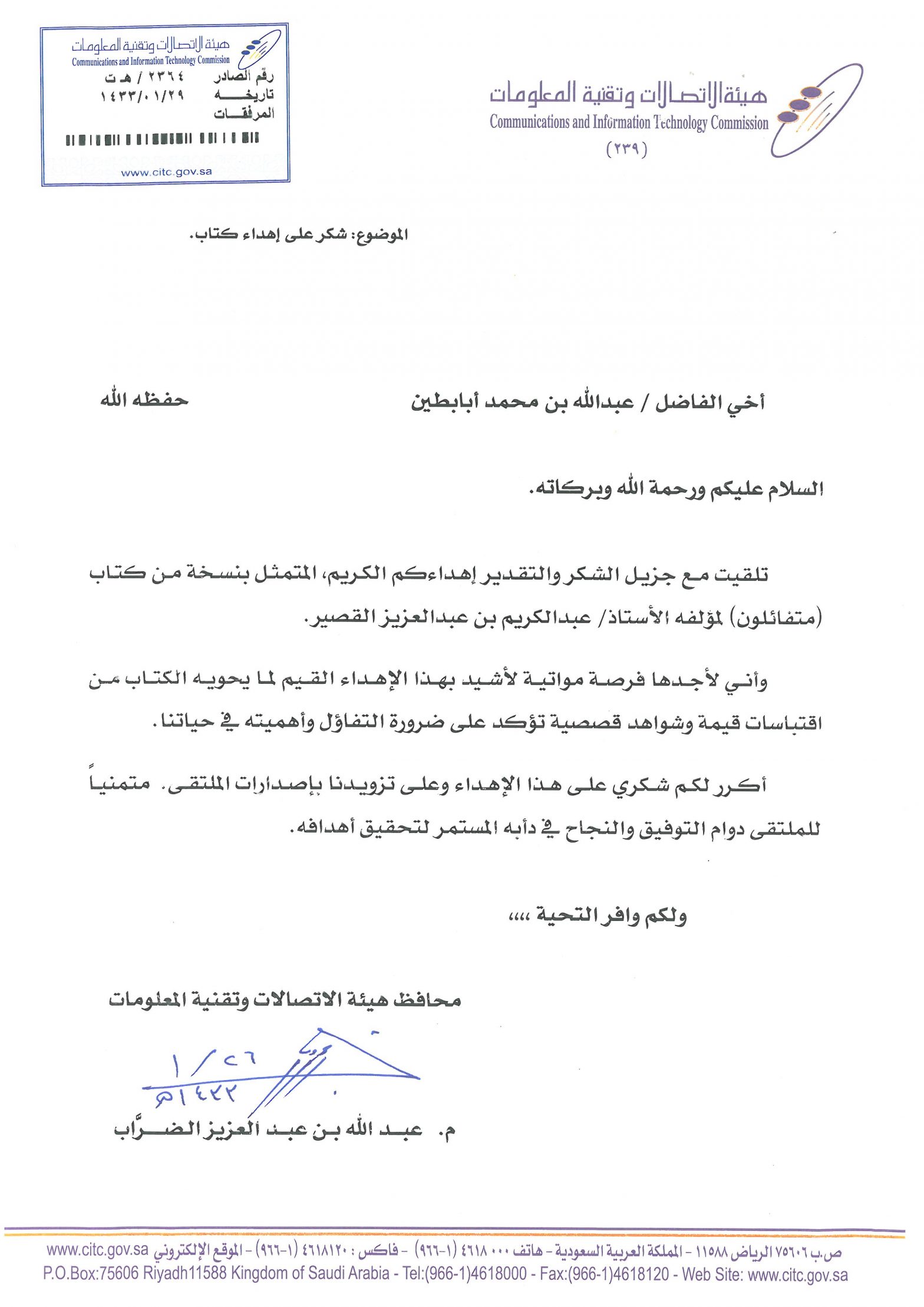 خطابات الشكر