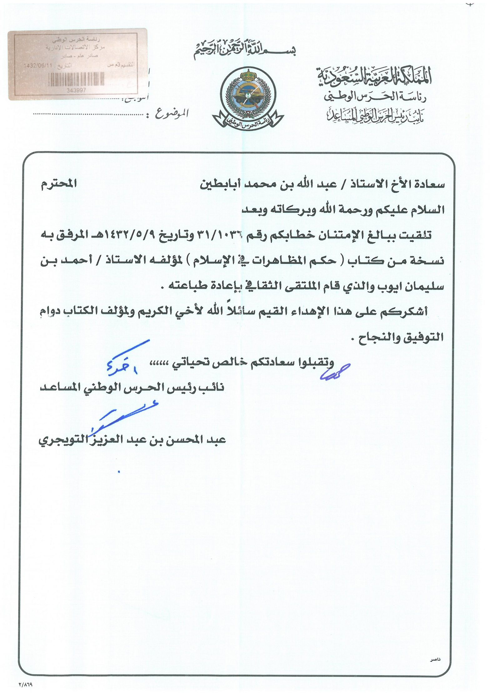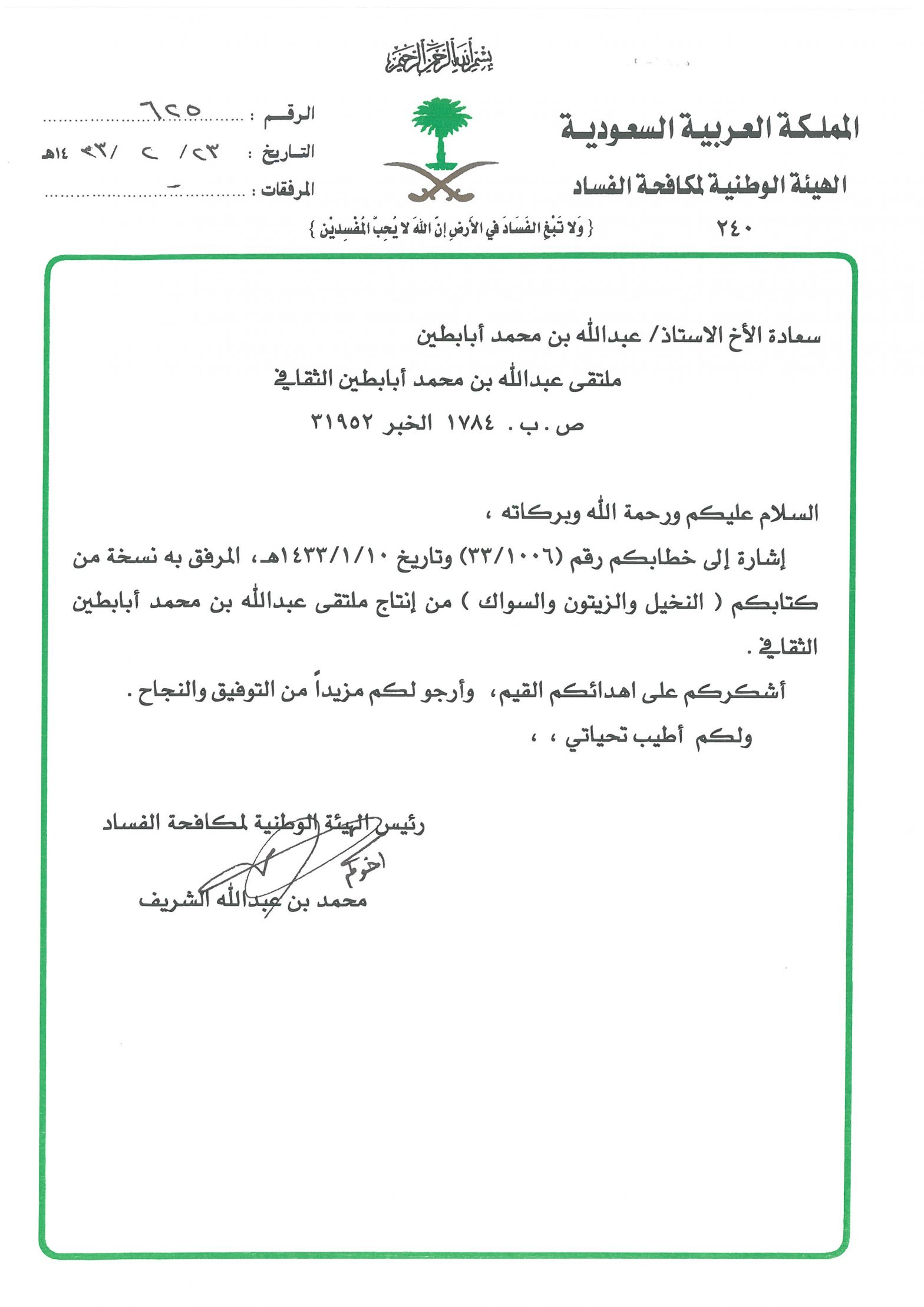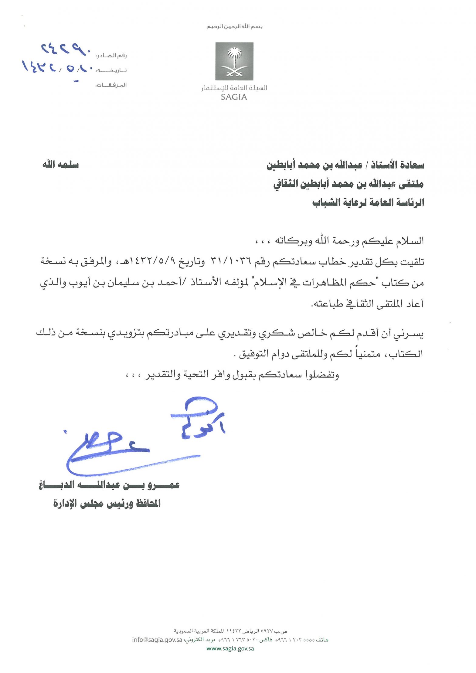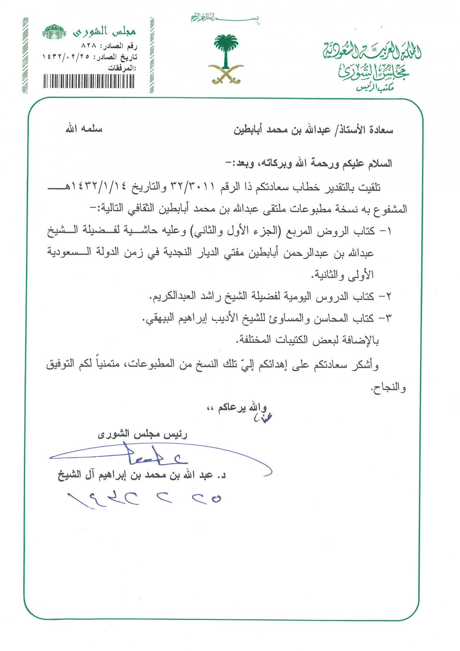 خطابات الشكر