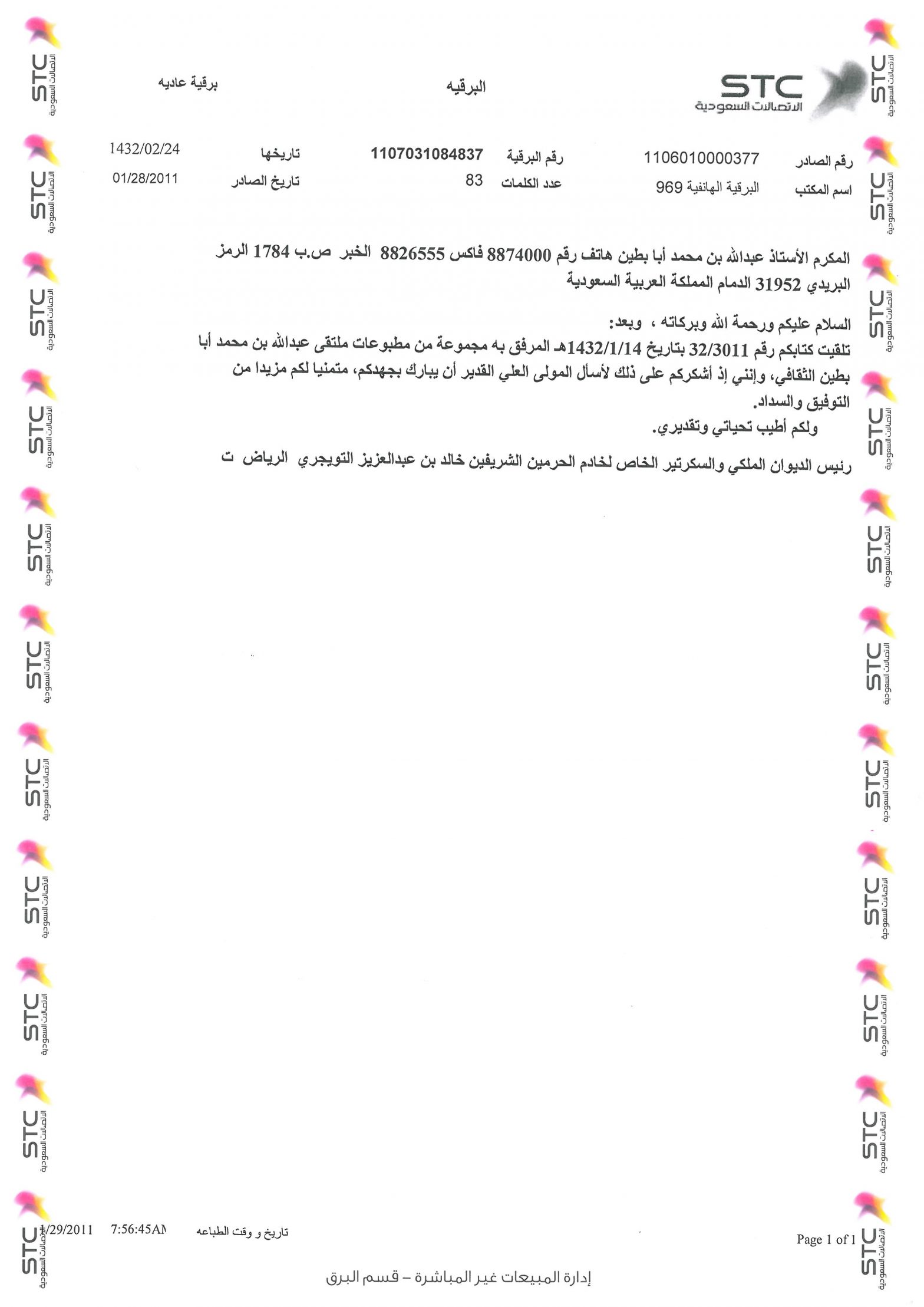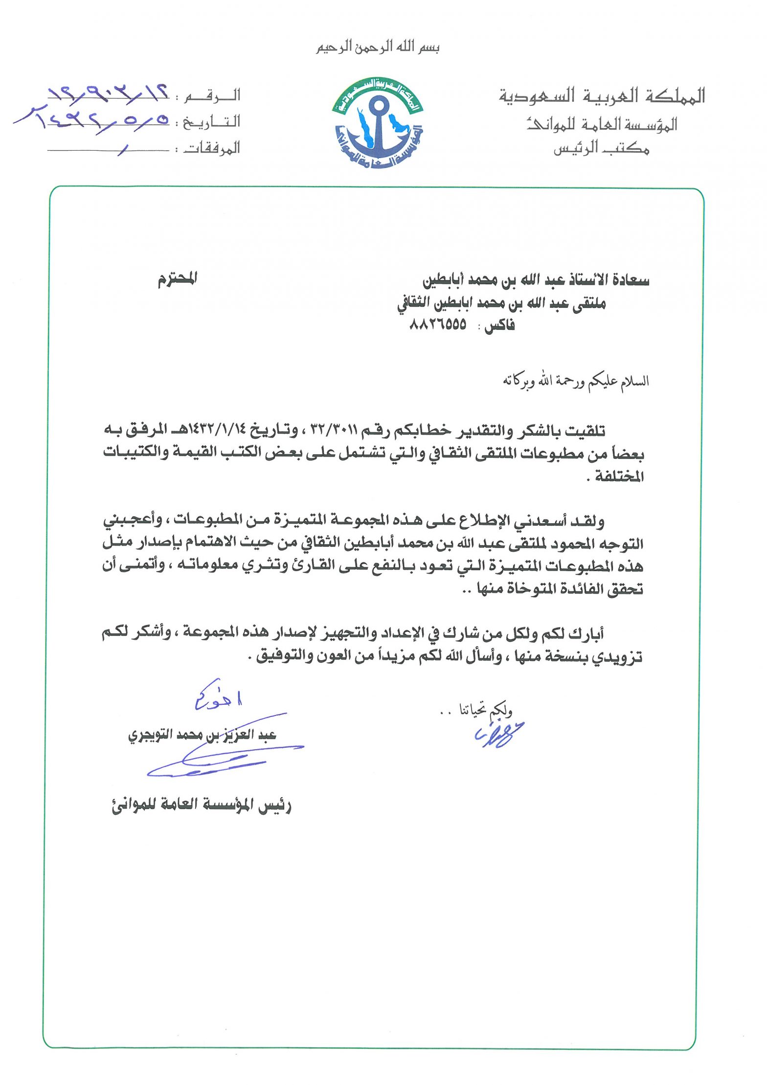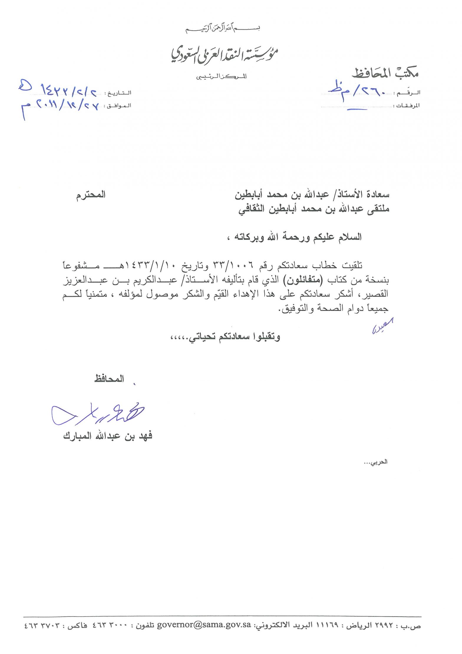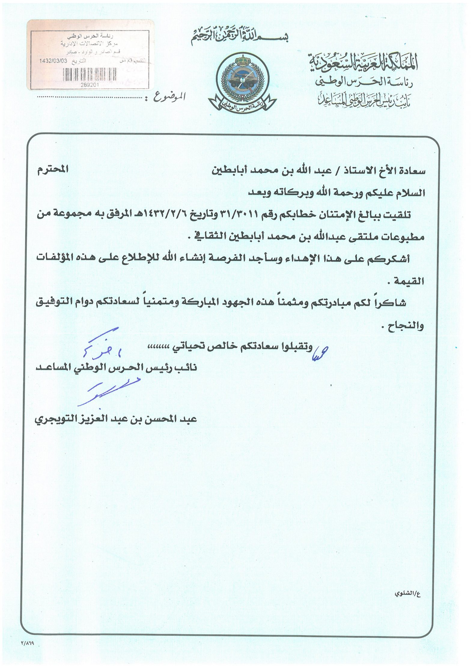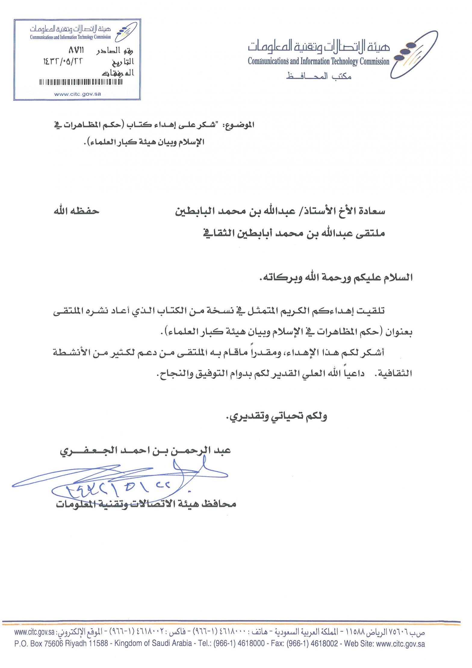 خطابات الشكر