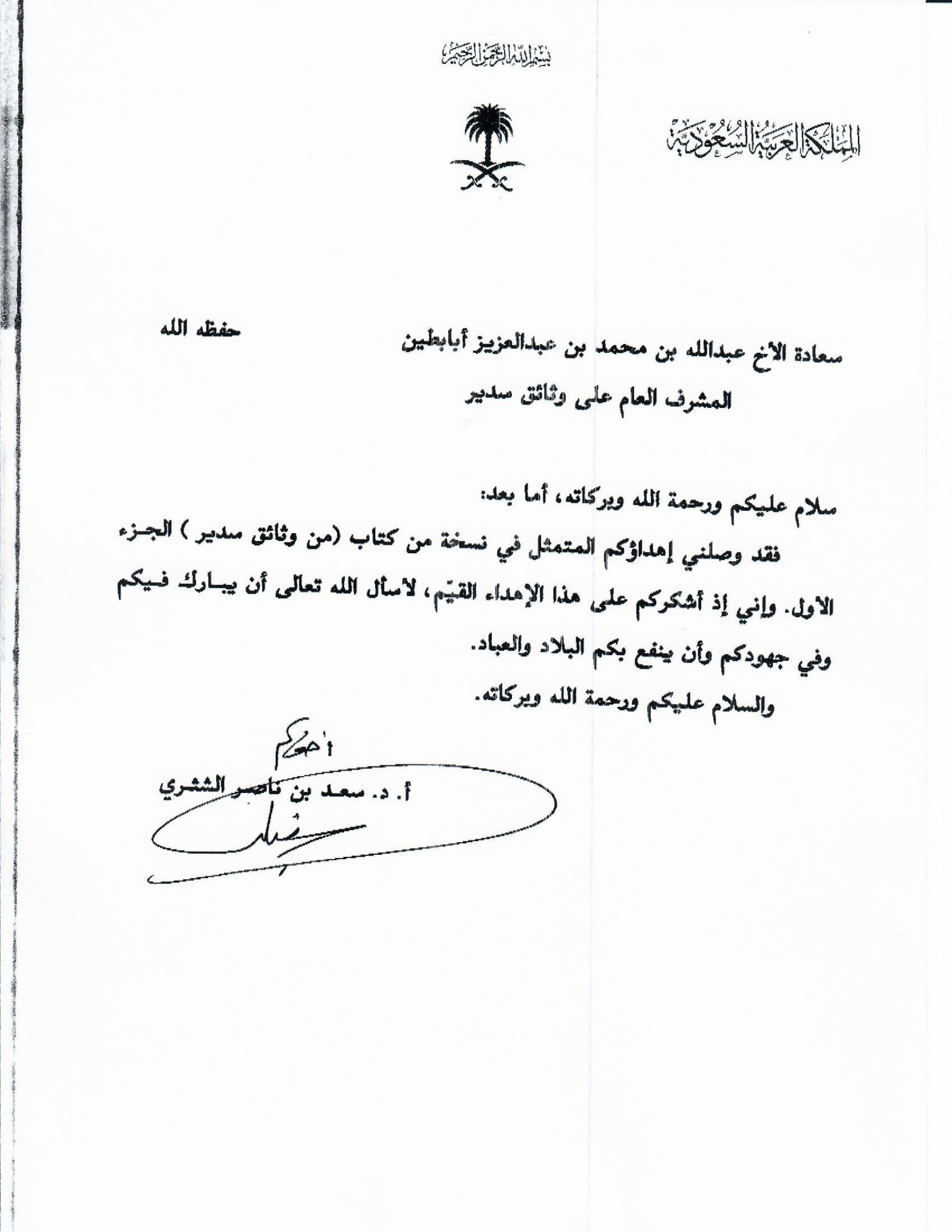 خطابات الشكر