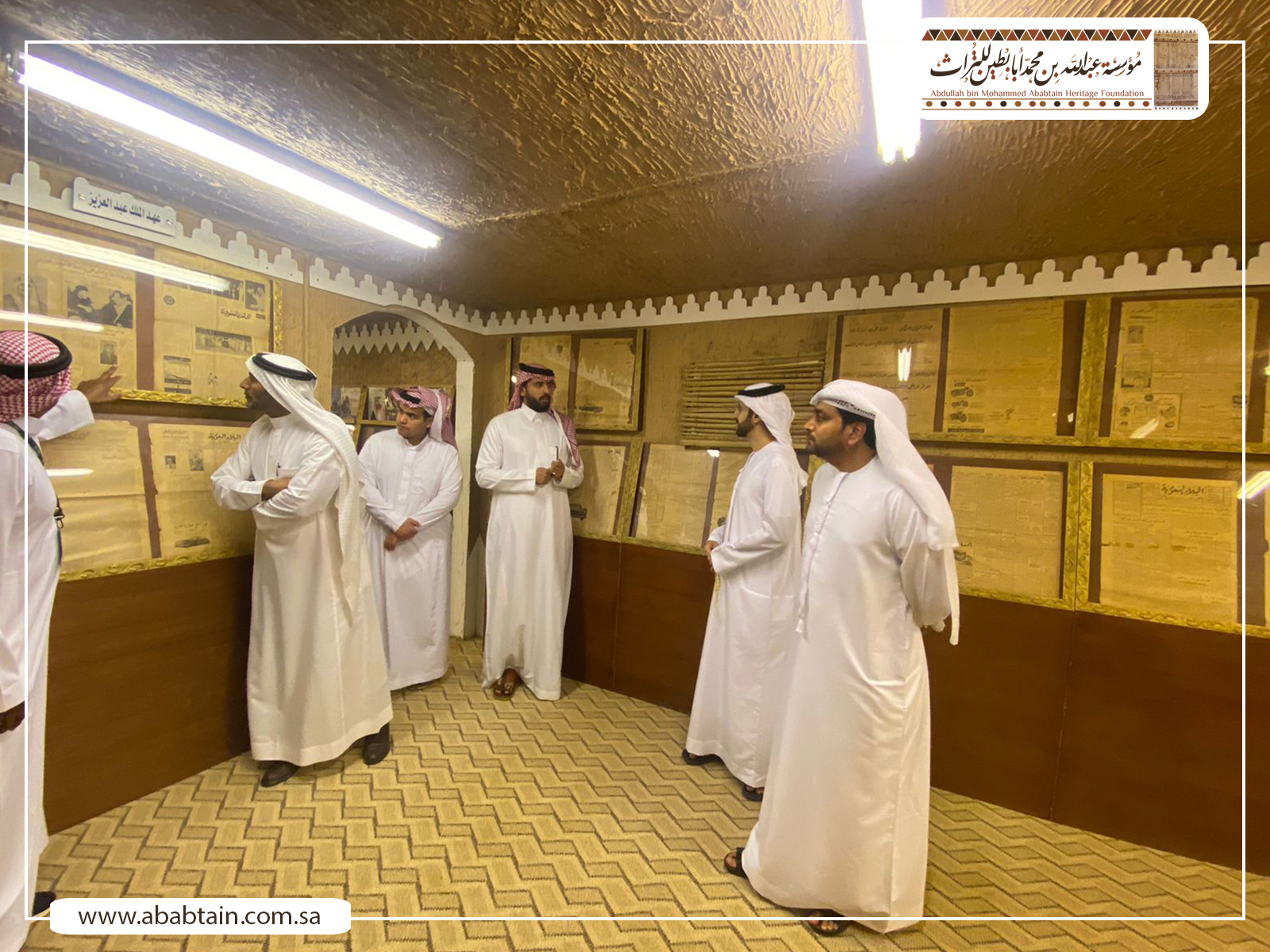 بدأ الضيوف جولتهم بمجلس «قهوة» الشيخ محمد بن عبدالمحسن أبابطين والذي يتسع لـ500 ضيف والمخصص لإقامة الأنشطة الثقافية والندوات والمناسبات الحكومية والأهلية (مجانًا)، ثم زيارة متحف أبابطين التراثي والذي يضم أكثر من 10 آلاف قطعة تراثية وتاريخية ويحتوي على أكثر من 10 أقسام تراثية تعكس الحياة قديماً بالمنطقة، كذلك زيارة المكتبة الوثائقية التي تضم أكثر من 20 قسماً منها التاريخ والعلوم الشرعية والأدب والشعر واللغة والهندسة والطب والعلوم الأخرى.