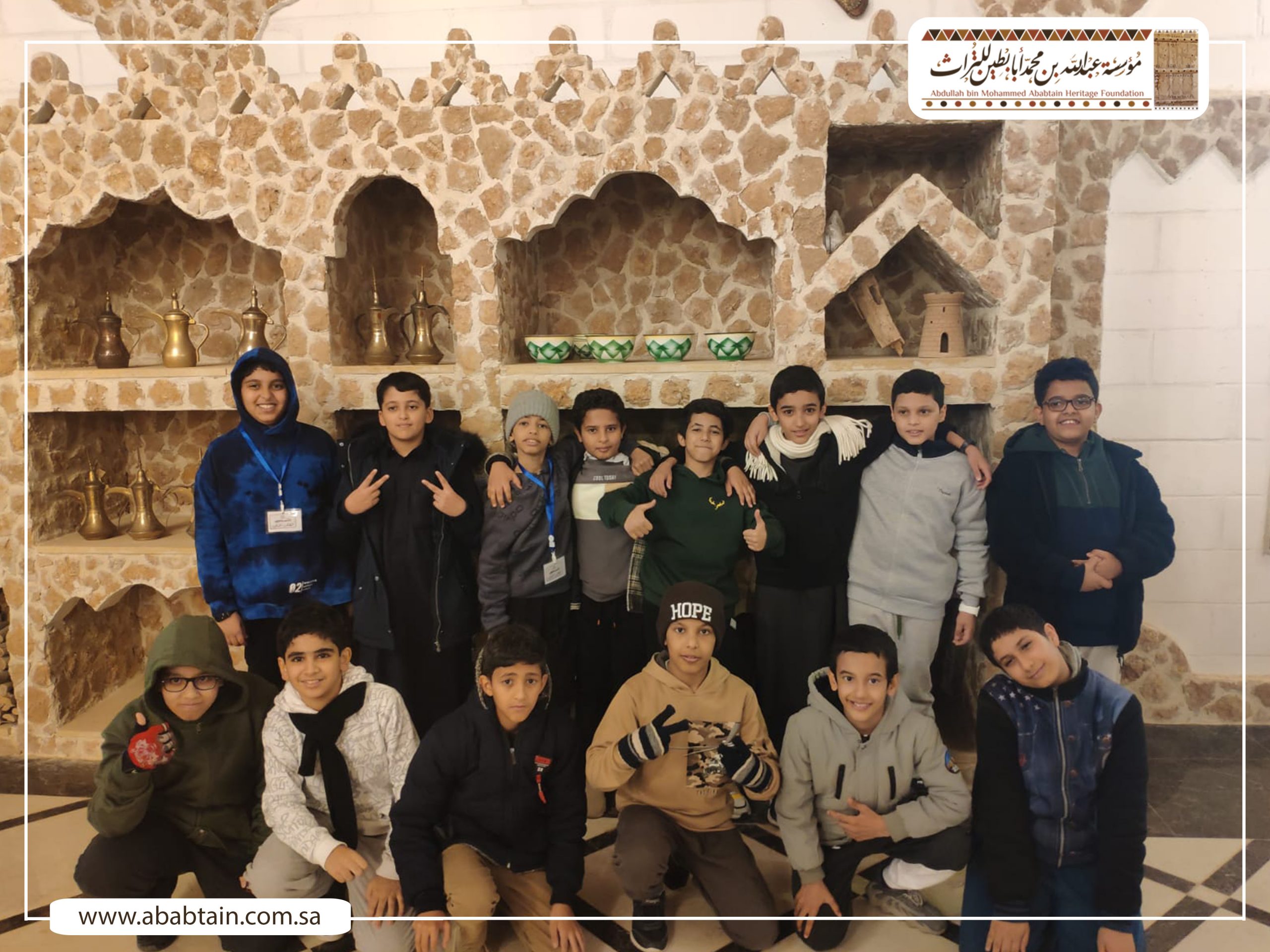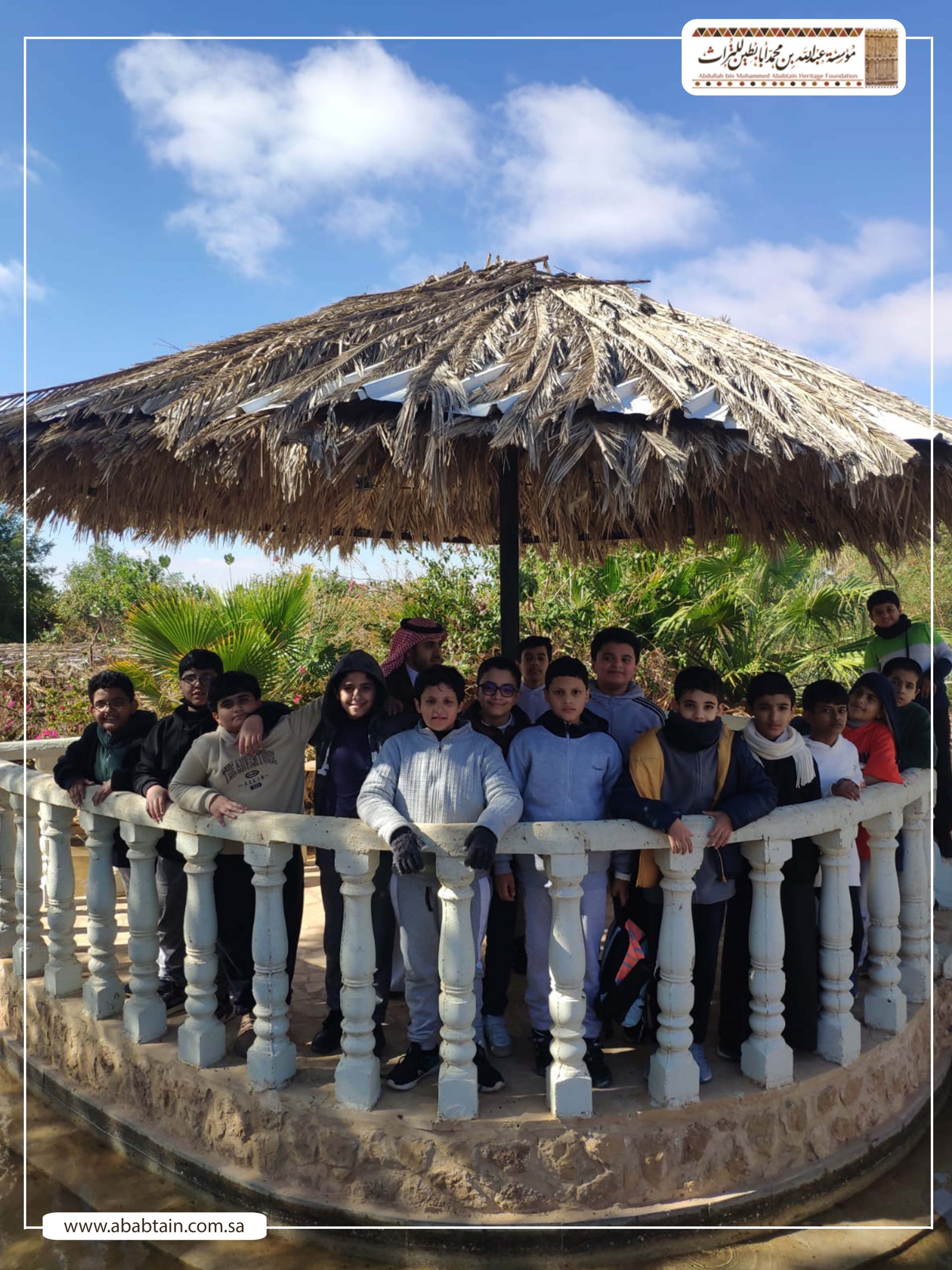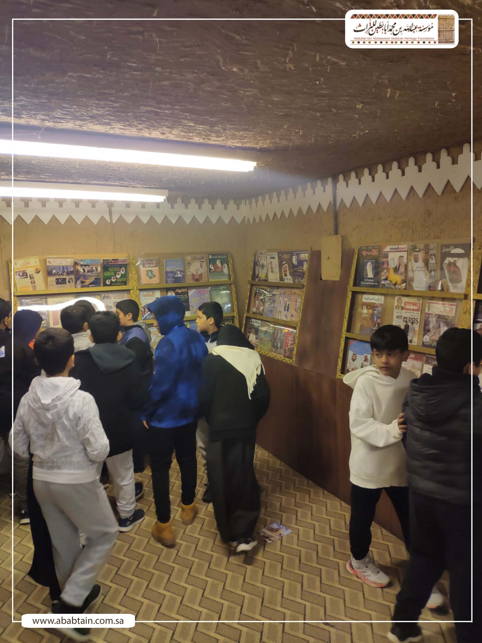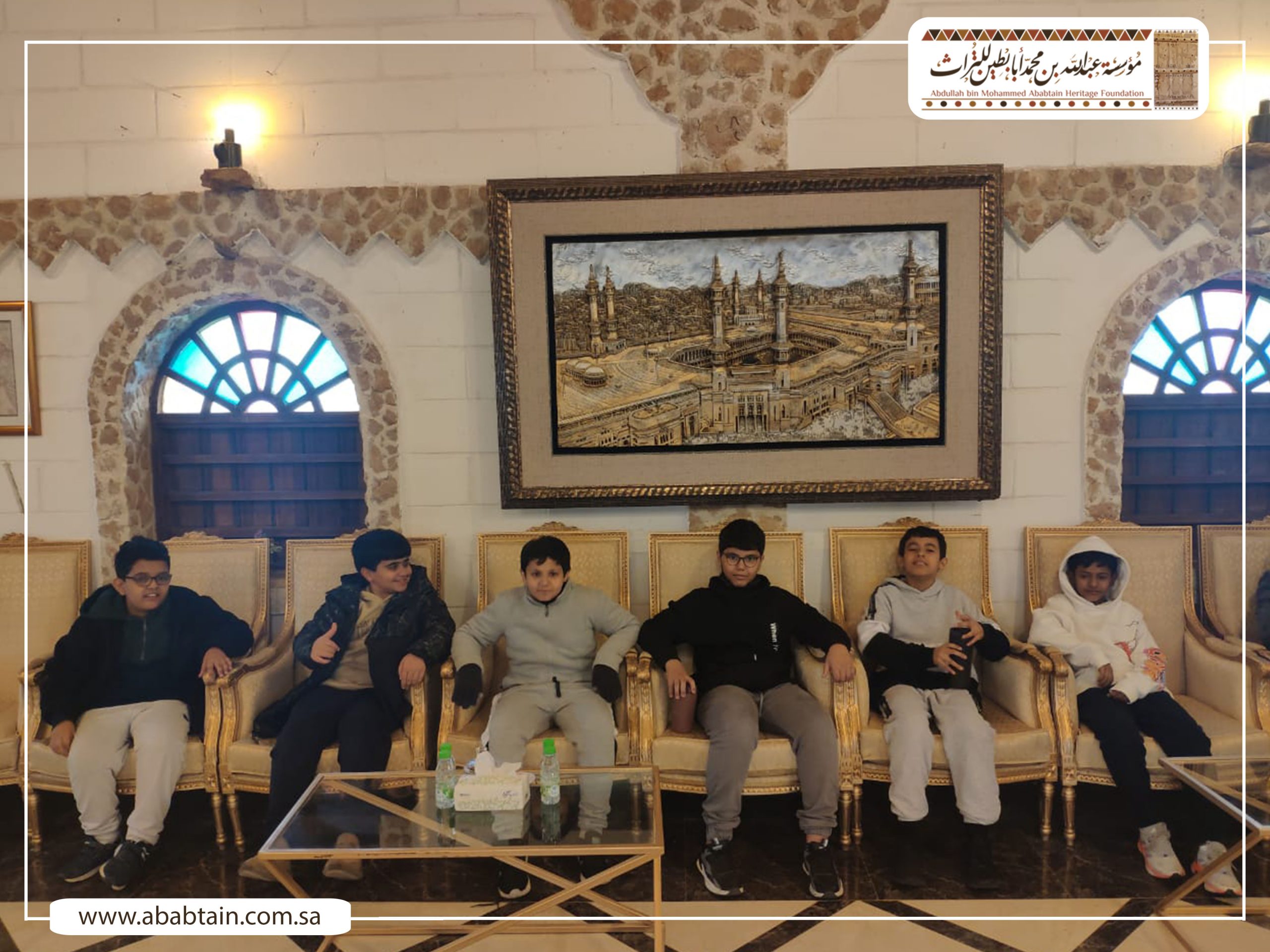 بدأت جولة الطلاب بزيارة لمجلس (قهوة) الشيخ محمد بن عبدالمحسن وهو مجلس يتسع لـ500 ضيف لإقامة الفعاليات الثقافية والتاريخية واستضافة الندوات والمناسبات الحكومية والأهلية بشكل مجاني، ثم توجه الطلاب لزيارة متحف أبابطين التراثي والذي يضم أكثر من عشرة آلاف قطعة تراثية وتاريخية.