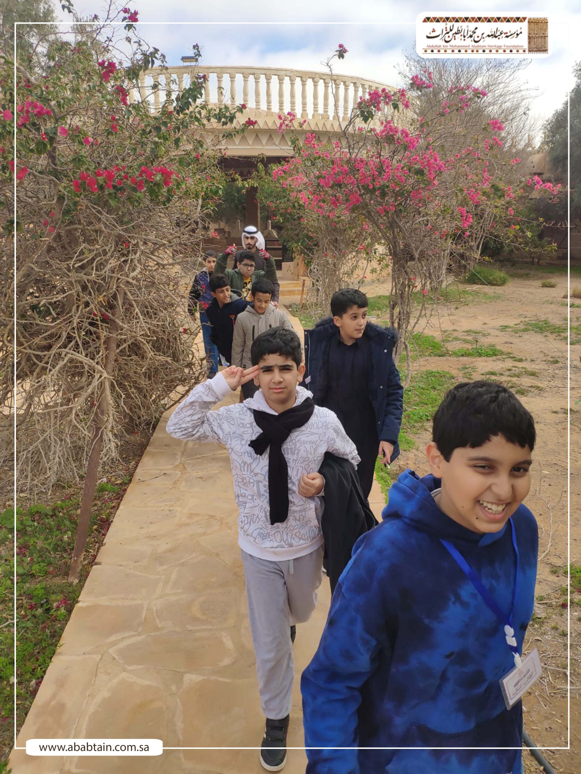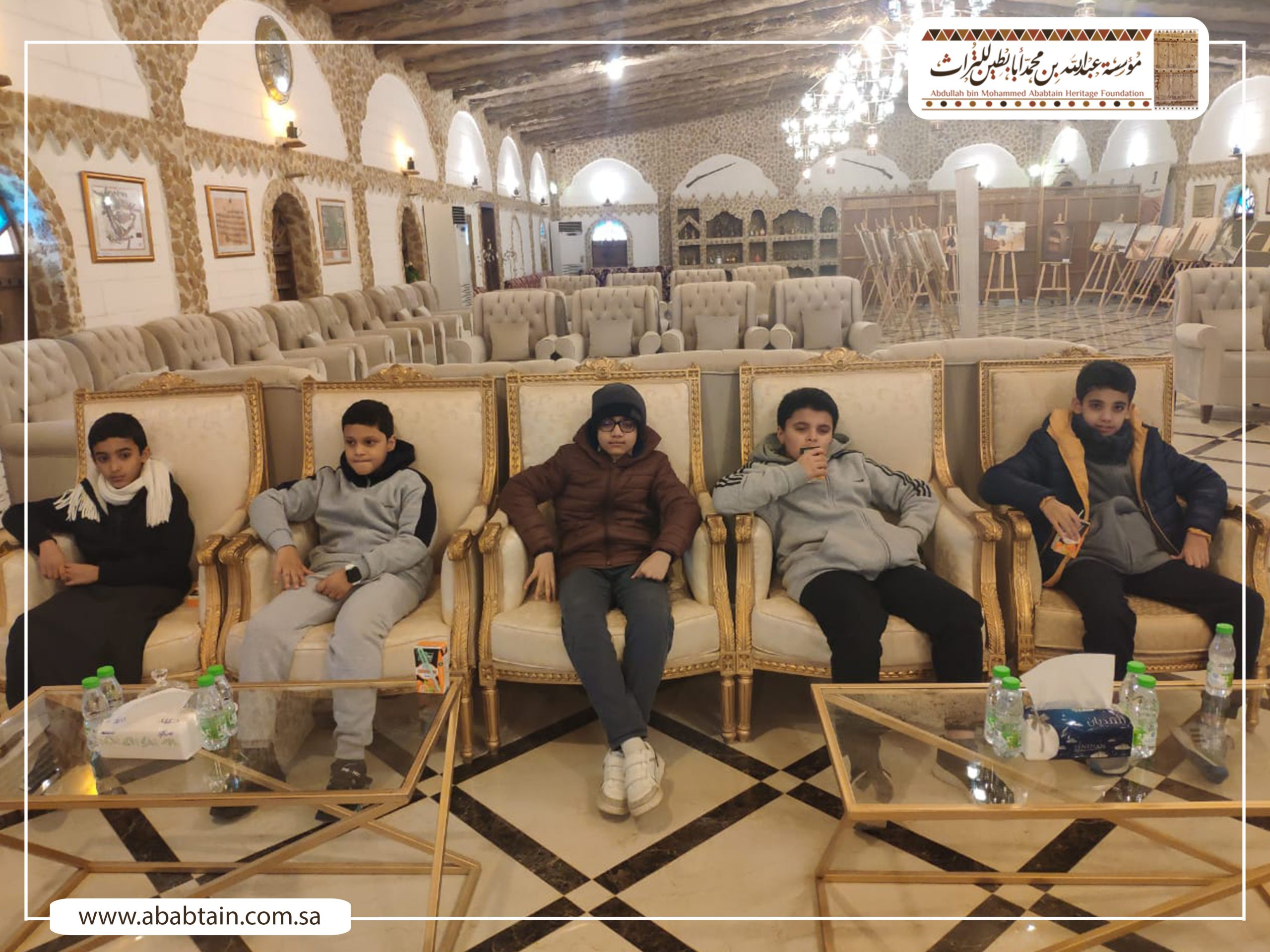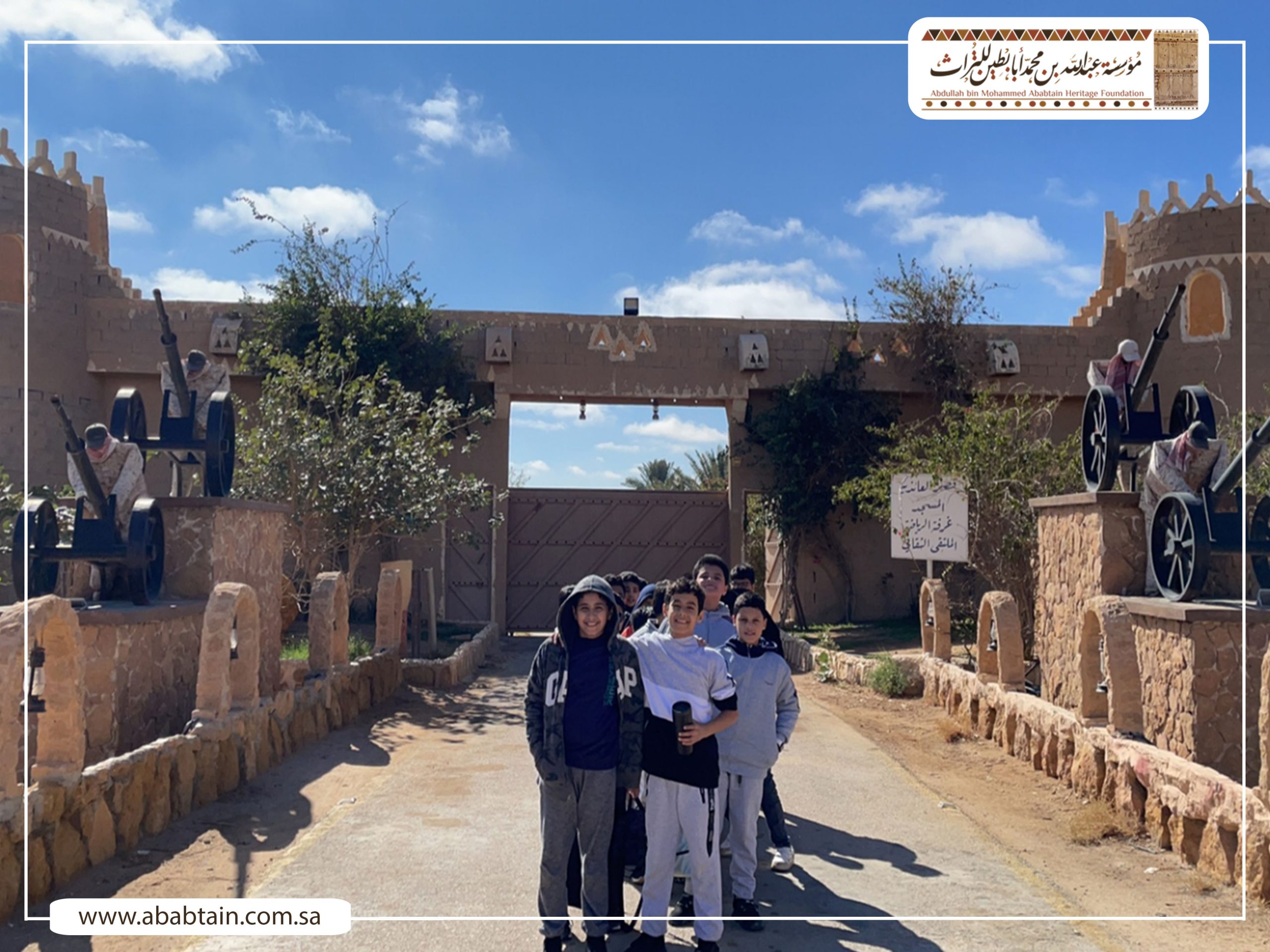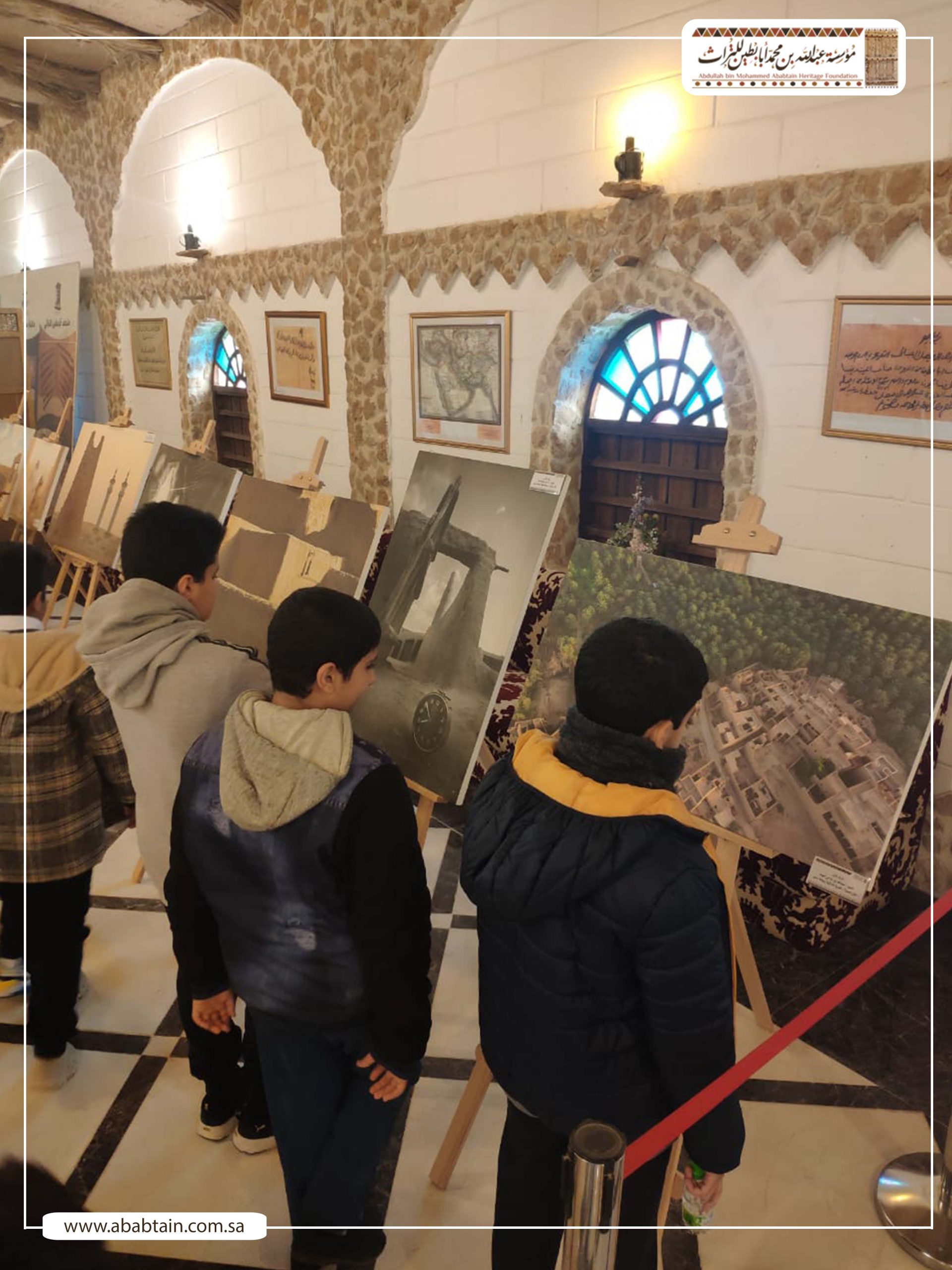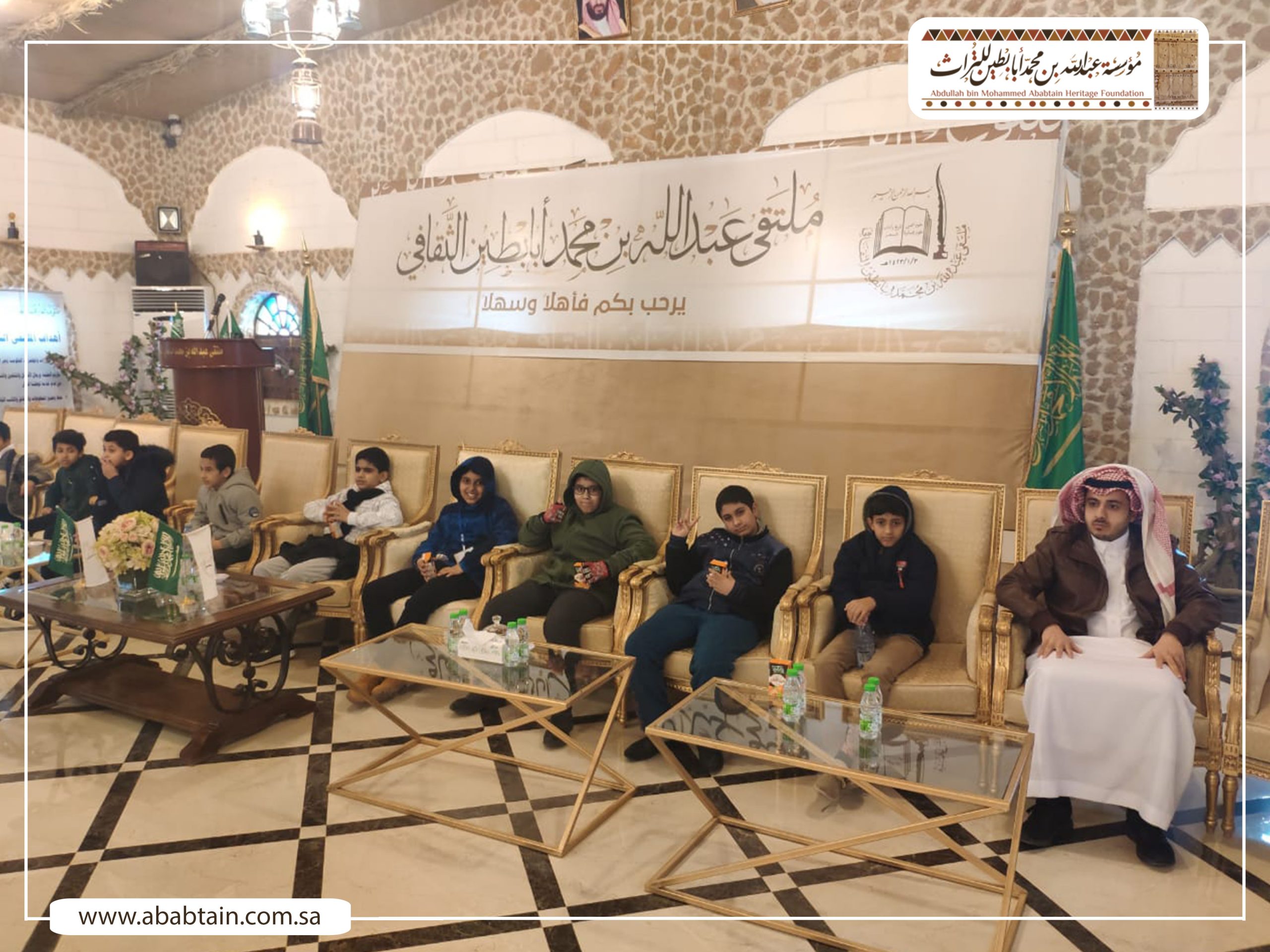 بدأت جولة الطلاب بزيارة لمجلس (قهوة) الشيخ محمد بن عبدالمحسن وهو مجلس يتسع لـ500 ضيف لإقامة الفعاليات الثقافية والتاريخية واستضافة الندوات والمناسبات الحكومية والأهلية بشكل مجاني، ثم توجه الطلاب لزيارة متحف أبابطين التراثي والذي يضم أكثر من عشرة آلاف قطعة تراثية وتاريخية.