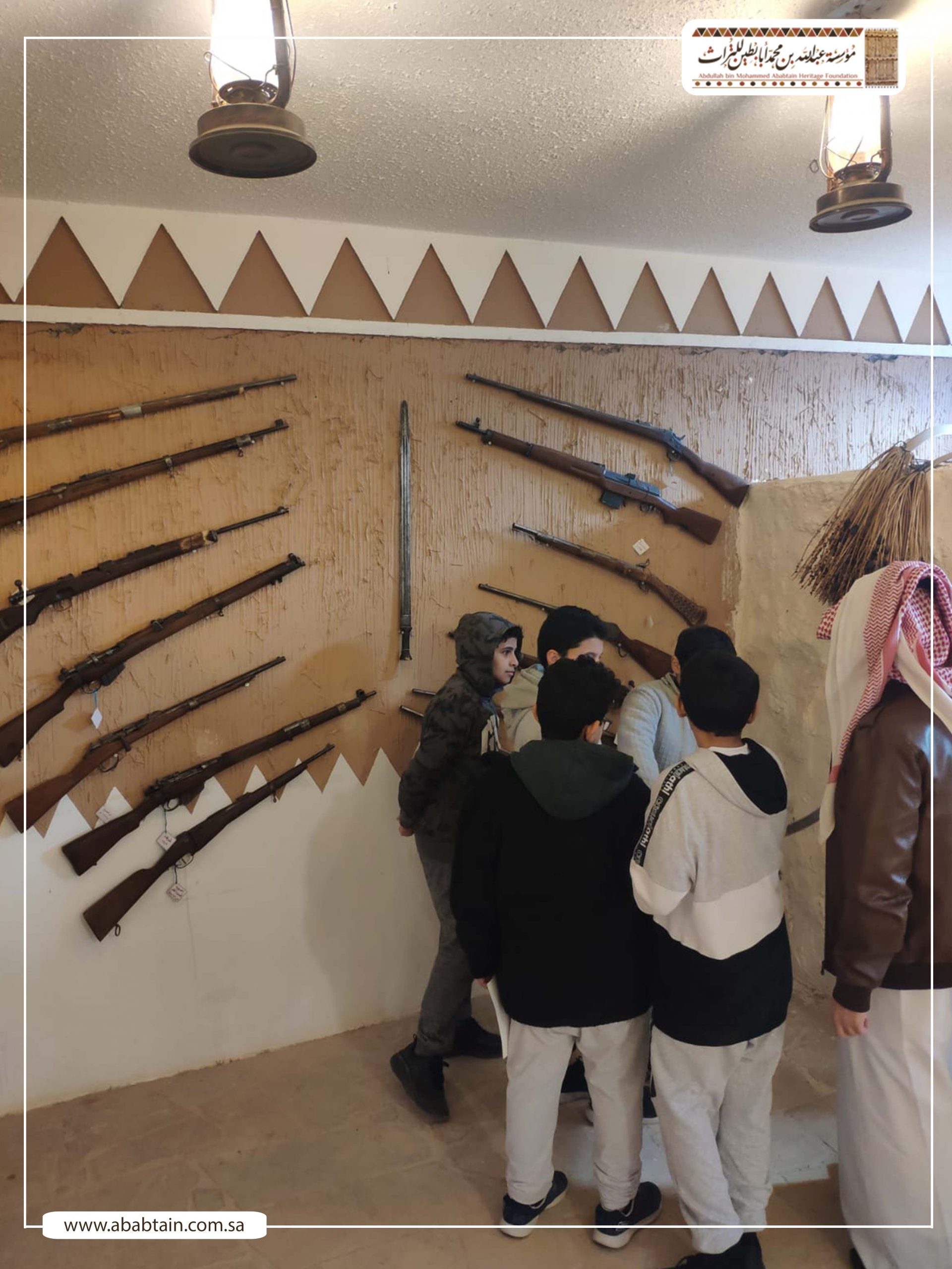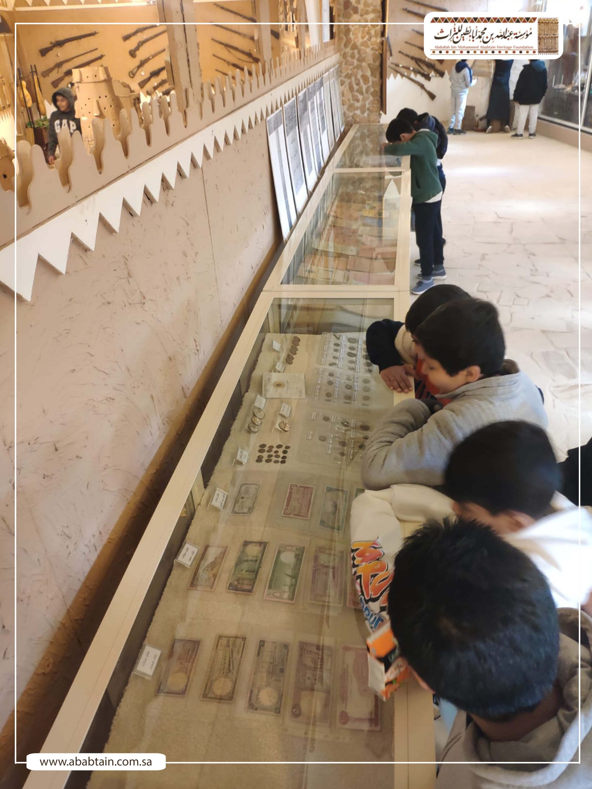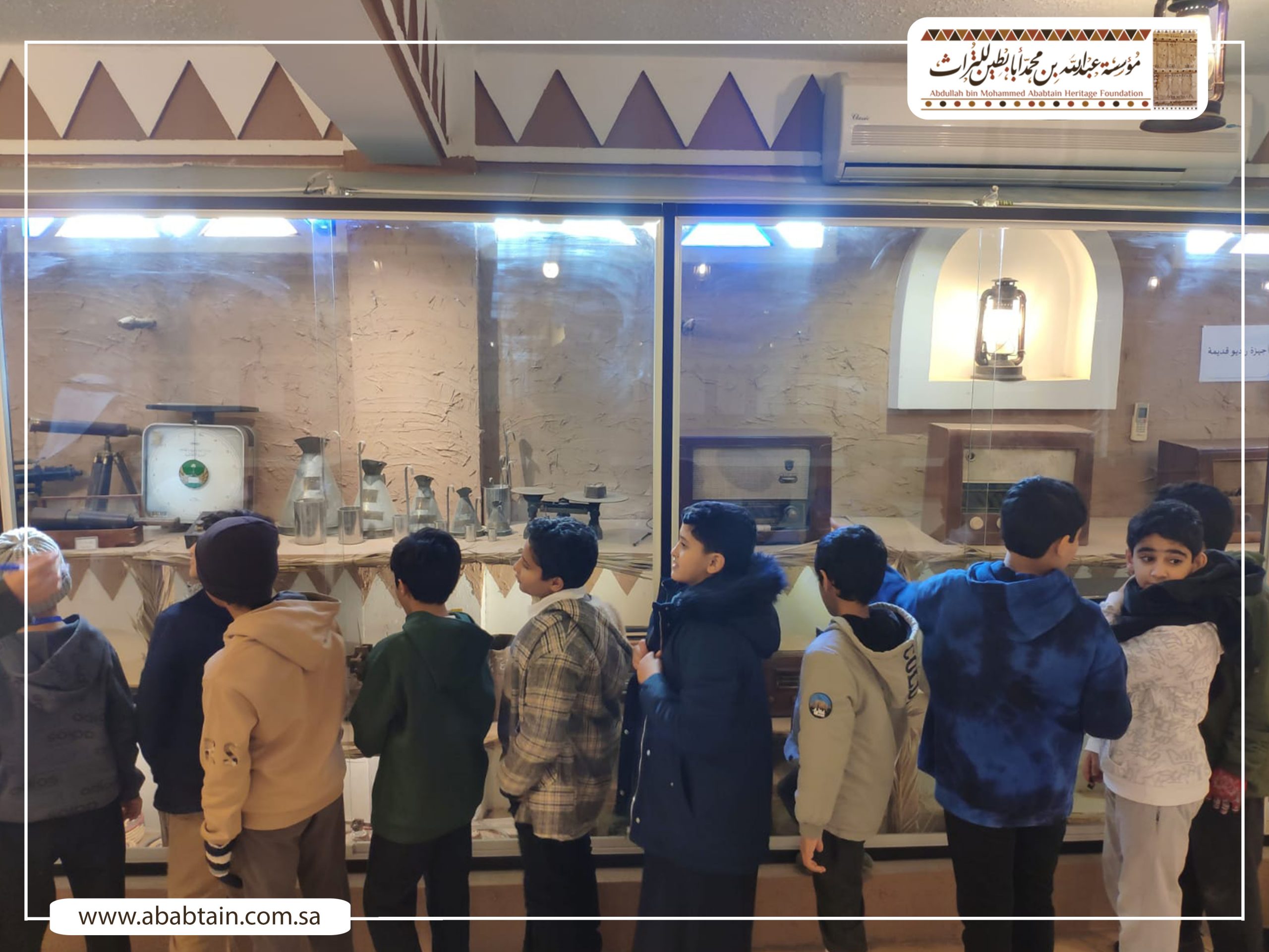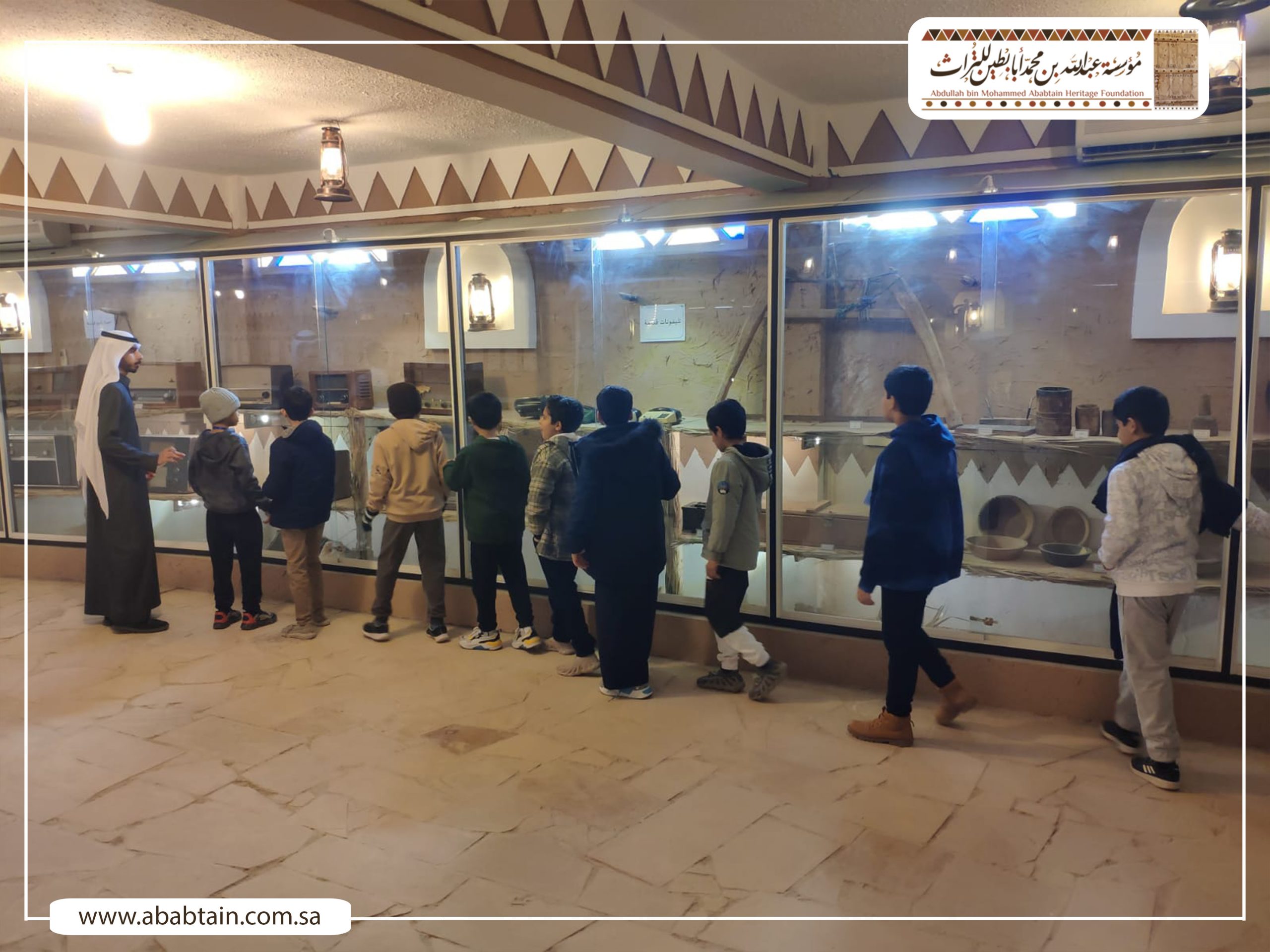 بدأت جولة الطلاب بزيارة لمجلس (قهوة) الشيخ محمد بن عبدالمحسن وهو مجلس يتسع لـ500 ضيف لإقامة الفعاليات الثقافية والتاريخية واستضافة الندوات والمناسبات الحكومية والأهلية بشكل مجاني، ثم توجه الطلاب لزيارة متحف أبابطين التراثي والذي يضم أكثر من عشرة آلاف قطعة تراثية وتاريخية.