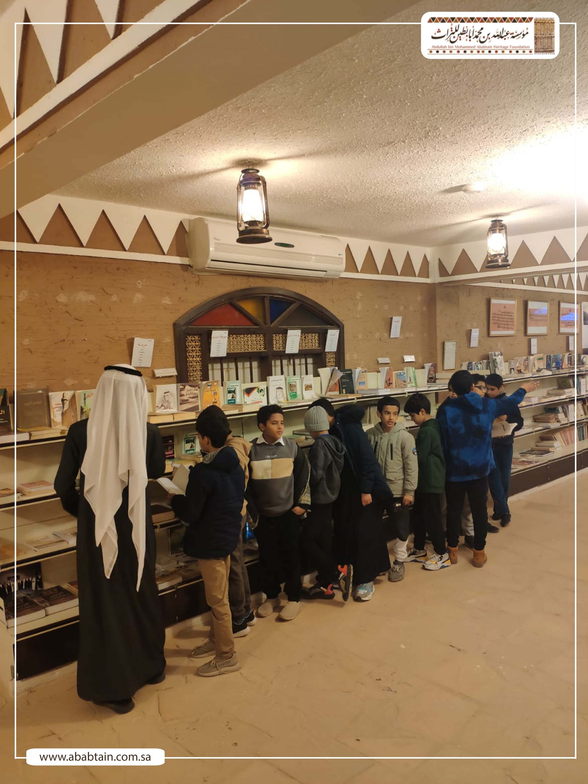 استضافت مؤسسة عبدالله بن محمد أبابطين الثقافية بروضة سدير، الأربعاء 28 ديسمبر 2022م، طلاب مدرسة «ابتدائية رياض الإبداع بالمجمعة» وذلك ضمن برنامج «زيارات طلاب المدارس» والتعرف على ما تضمه من متاحف ومعارض تراثية وثقافية وتاريخية مختلفة.