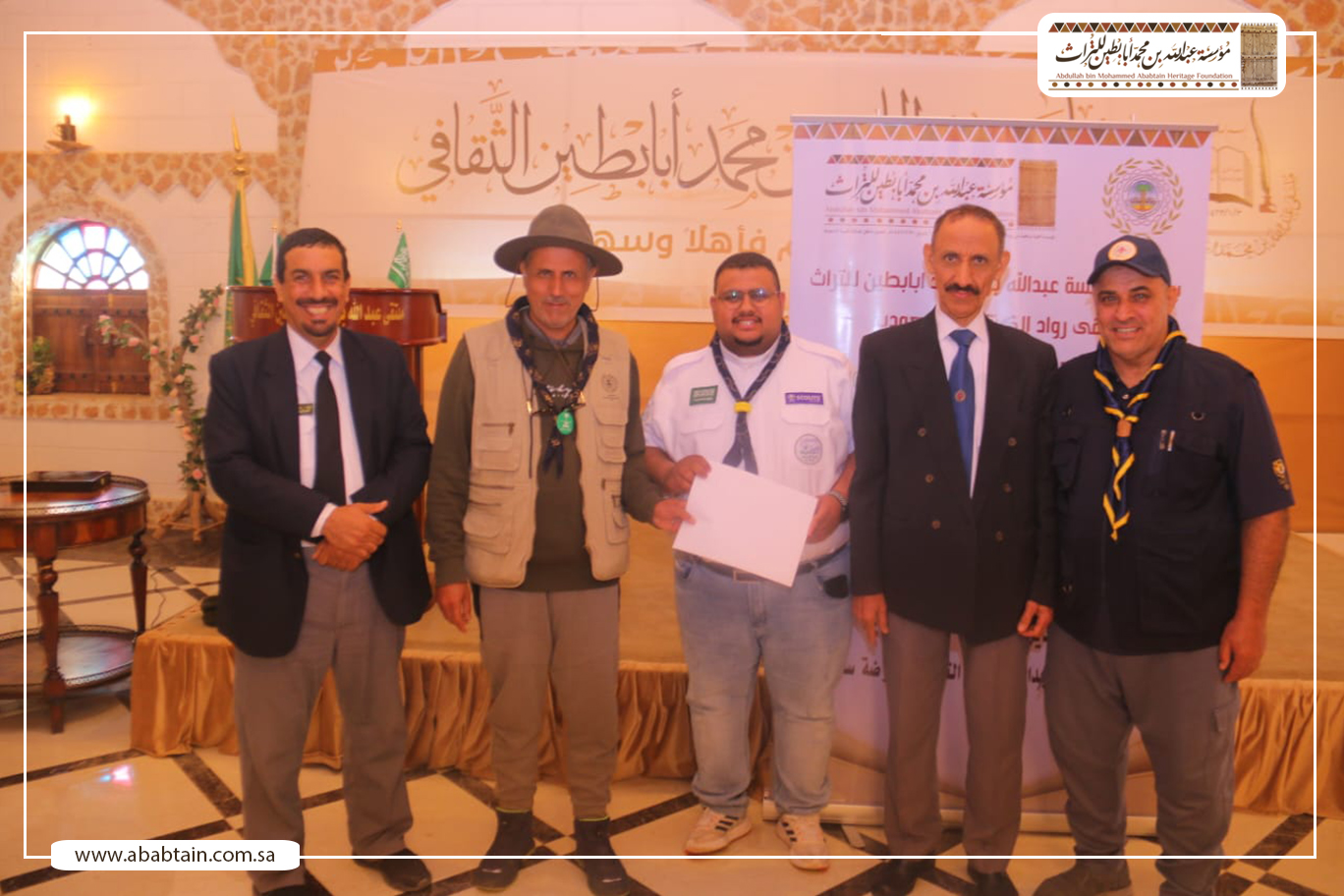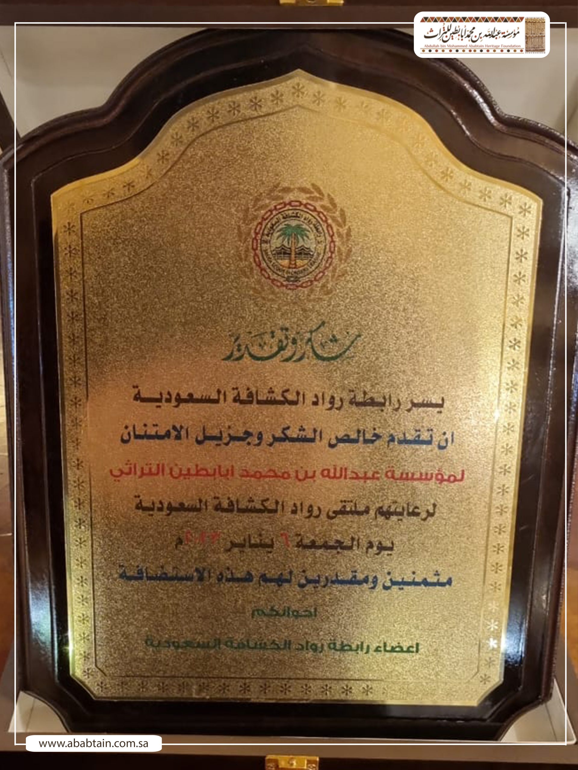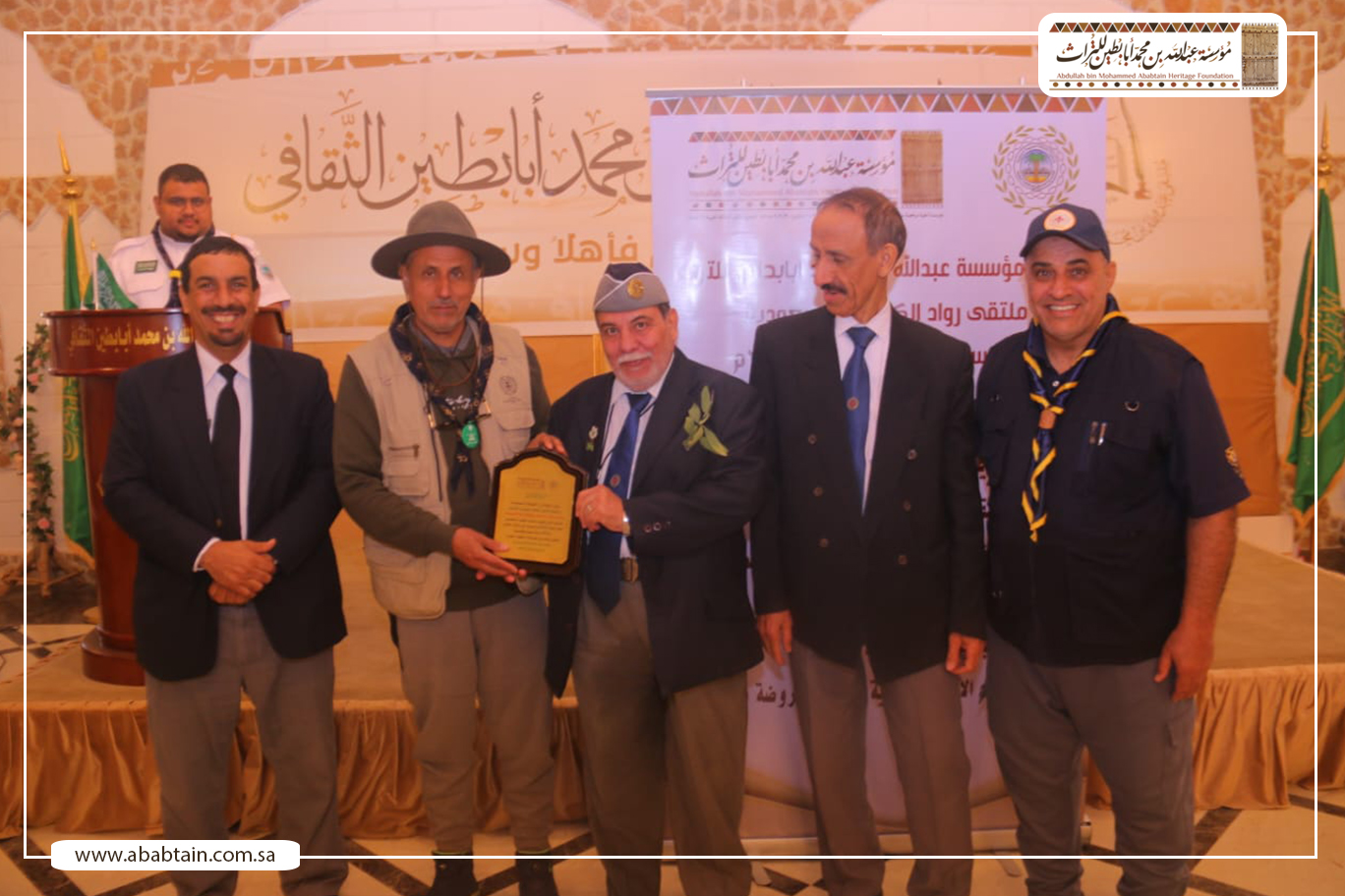 وفي نهاية اليوم بدأت مراسم حفل التكريم، وقدم نائب رئيس رابطة الرواد وأعضاء الكشافة الشكر لمؤسسة عبدالله بن محمد أبابطين الثقافية لرعايتهم ملتقى رواد الكشافة السعودية، وتم إهداء المؤسسة درعًا تكريميًا لذلك.