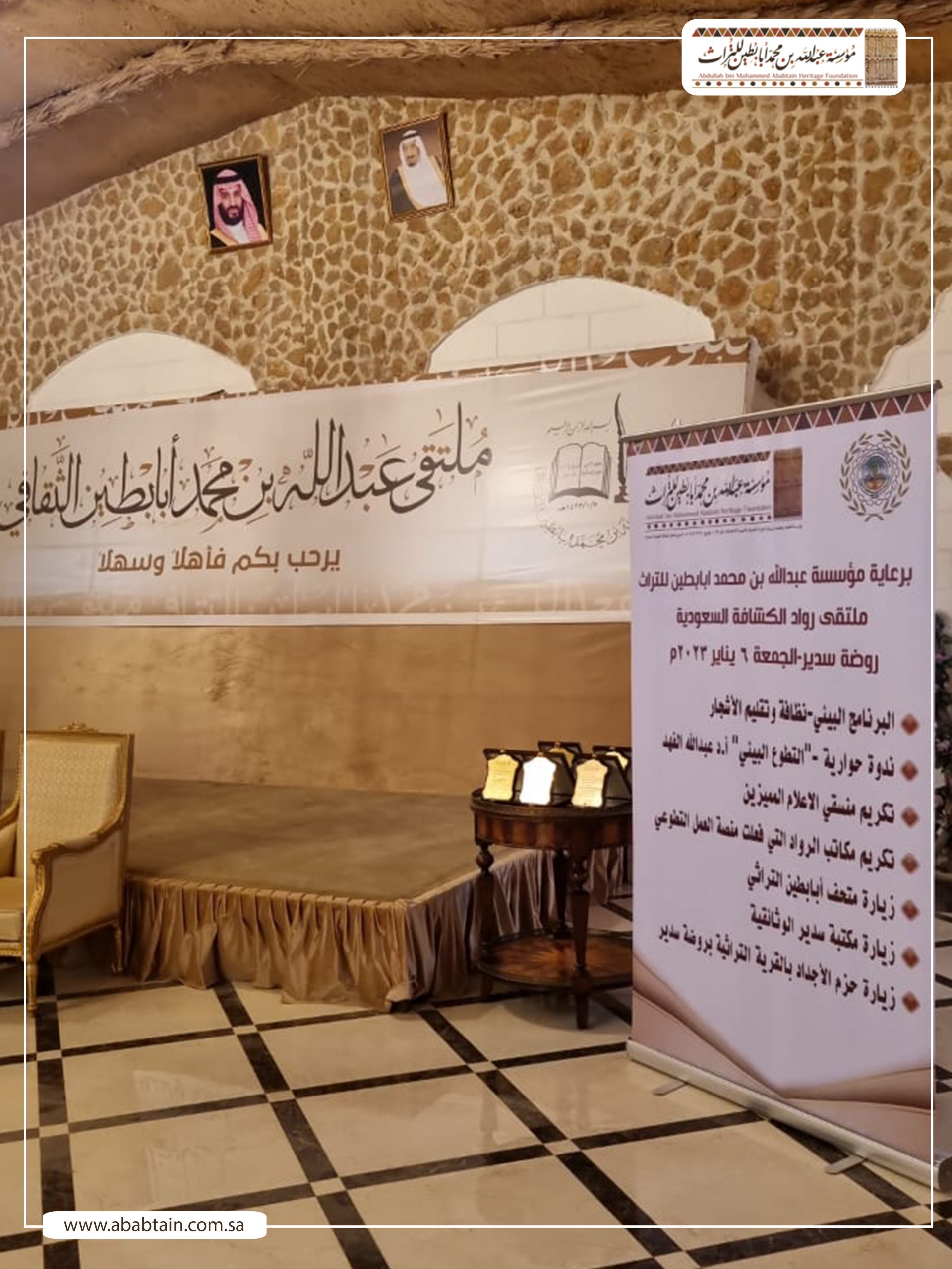 بعد ذلك بدأ أعضاء الكشافة بالتجول في متاحف ومعارض مؤسسة عبدالله بن محمد أبابطين التراثي، بداية من مجلس (قهوة) الشيخ محمد بن عبدالمحسن أبابطين «رحمه الله» بمزرعة «العائذية» بروضة سدير، كذلك التعرف على فعاليات واستضافات ملتقى عبدالله بن محمد أبابطين الثقافي على مدار 20 عامًا من العمل الاجتماعي والثقافي والتاريخي، ثم توجه أعضاء رواد الكشافة لزيارة متحف أبابطين التراثي والذي يضم أكثر من عشرة آلاف قطعة تراثية وتاريخية، كذلك الاطلاع على مكتبة سدير الوثائقية والتي تضم أكثر من مائة ألف كتاب في مختلف المجالات الثقافية والعلمية والتاريخية والإسلامية.